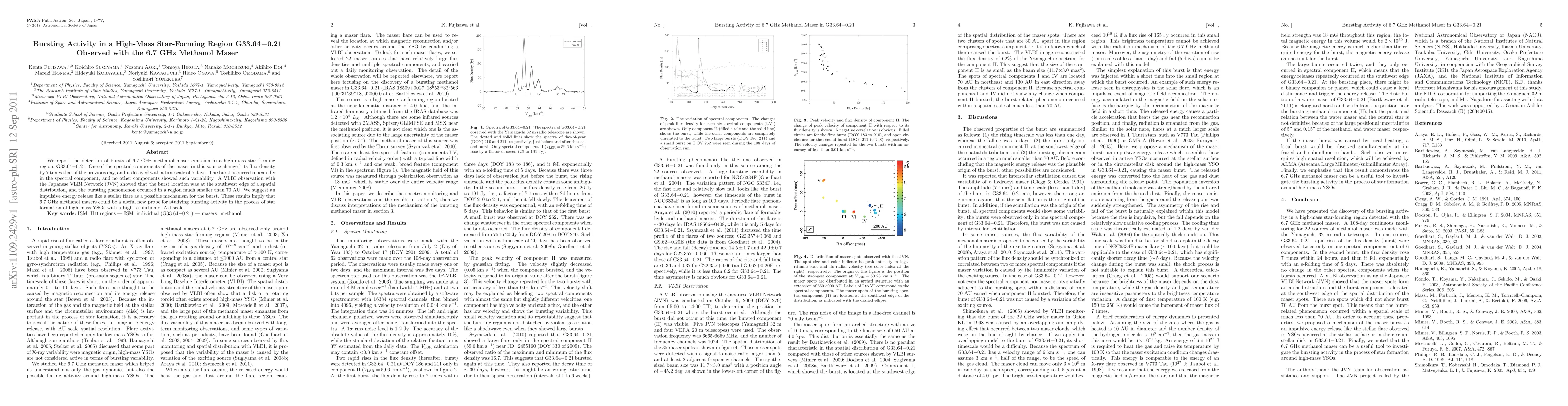 The research detected rapid, intense bursts in 6.7 GHz methanol maser emission from the high-mass star-forming region G33.64-0.21, with one component's flux density increasing sevenfold over a day, then decaying in 5 days. VLBI observations pinpointed the bursts to a small region (smaller than 70 AU), suggesting an energy release akin to a stellar flare. This implies that methanol masers could serve as a high-resolution probe for studying bursting activity in high-mass young stellar object formation.