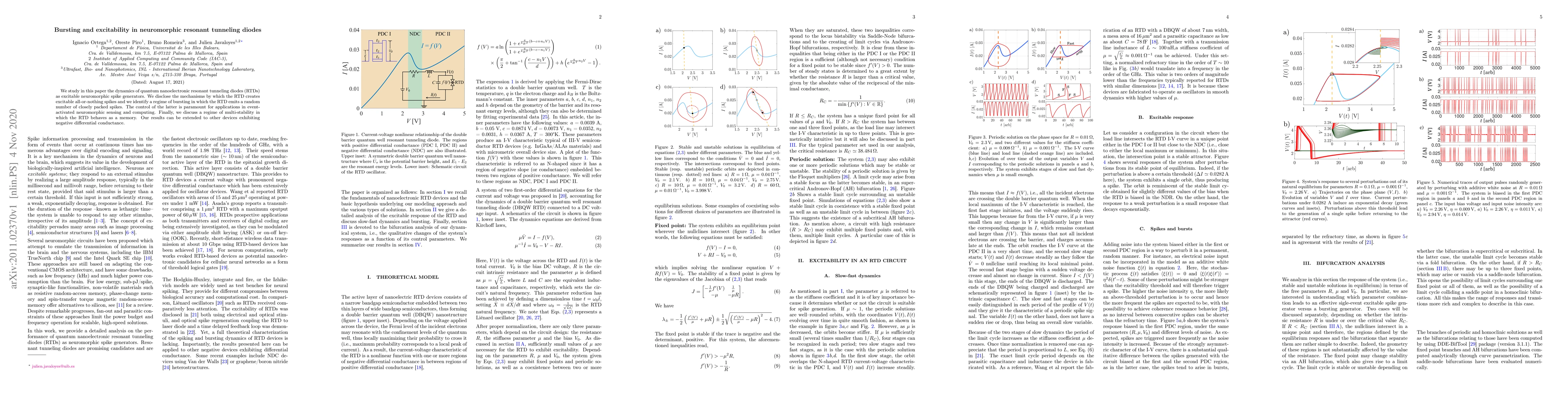 This paper investigates neuromorphic resonant tunneling diodes as excitable spike generators, discovering bursting behavior and multi-stability for applications in event-activated sensing and computing.
