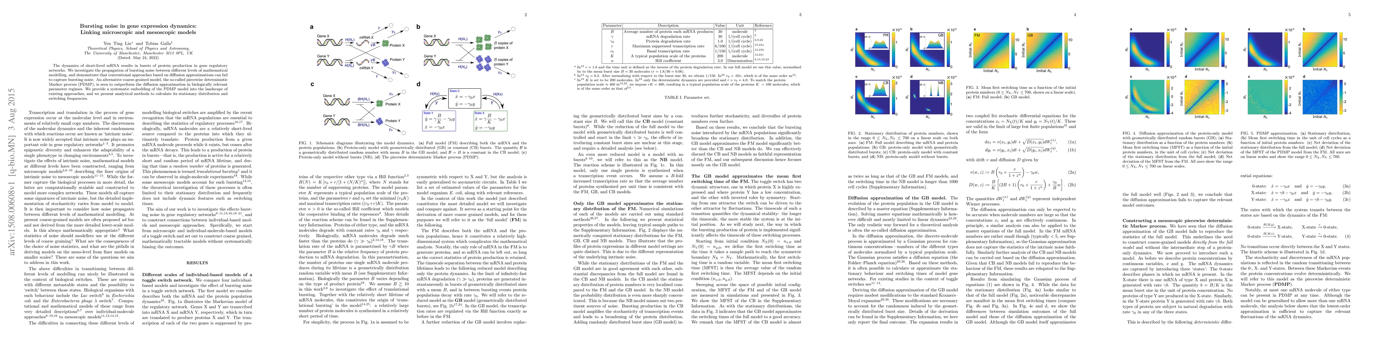 This research investigates gene expression noise resulting from mRNA bursts, finding that traditional diffusion models fail to capture this noise. A superior alternative, the Piecewise Deterministic Markov Process (PDMP) model, is presented and shown to better represent biological systems, with methods to calculate its stationary distribution and switching frequencies provided.