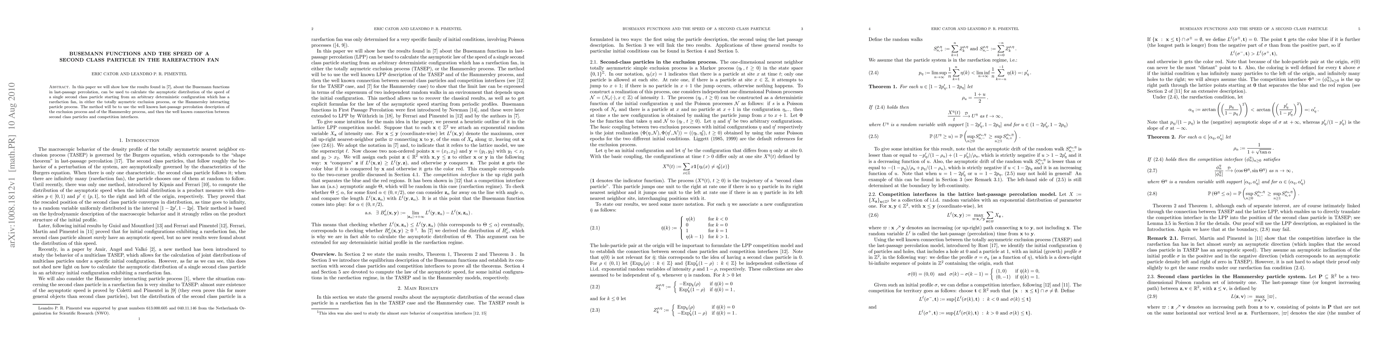 In this paper we will show how the results found in Cator and Pimentel 2009, about the Busemann functions in last-passage percolation, can be used to calculate the asymptotic distribution of the speed of a single second class particle starting from an arbitrary deterministic configuration which has a rarefaction fan, in either the totally asymetric exclusion process, or the Hammersley interacting particle process. The method will be to use the well known last-passage percolation description of the exclusion process and of the Hammersley process, and then the well known connection between second class particles and competition interfaces.