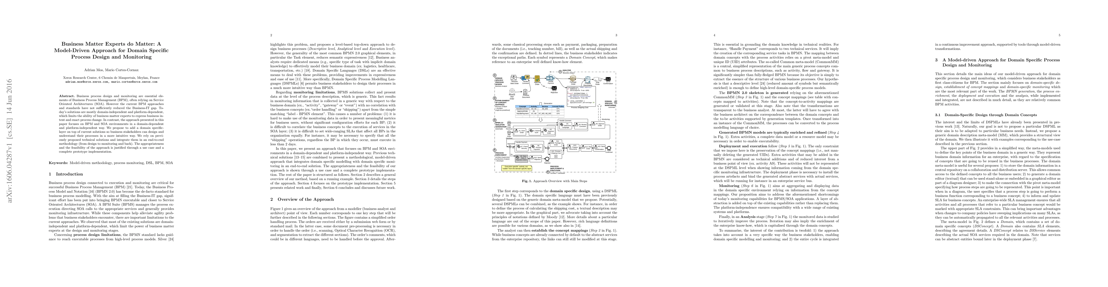 This paper proposes a domain-specific layer for Business Process Management (BPM) to bridge the Business-IT gap, enabling business matter experts to design and monitor processes intuitively. The approach integrates existing technical solutions into a comprehensive methodology, validated through a use case and prototype implementation.