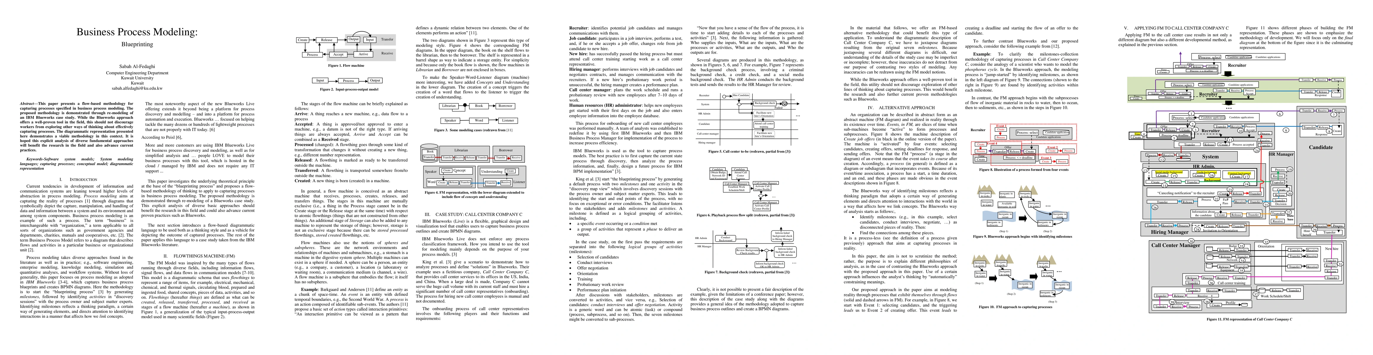 This paper presents a flow-based methodology for capturing processes specified in business process modeling. The proposed methodology is demonstrated through re-modeling of an IBM Blueworks case study. While the Blueworks approach offers a well-proven tool in the field, this should not discourage workers from exploring other ways of thinking about effectively capturing processes. The diagrammatic representation presented here demonstrates a viable methodology in this context. It is hoped this explicit analysis of diverse fundamental approaches will benefit the research in the field and also advance current practices.