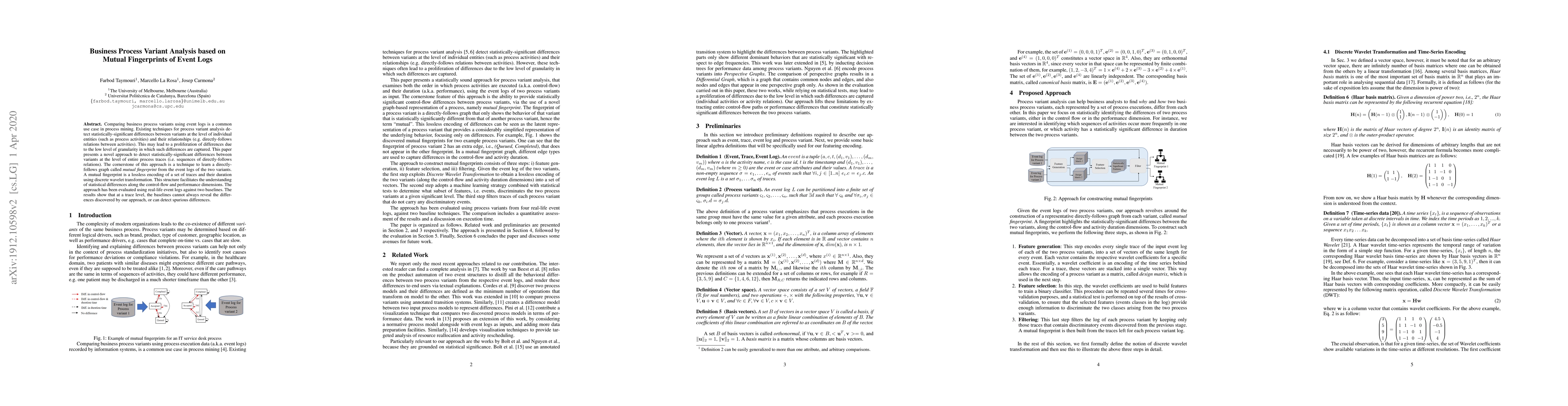 This paper introduces a novel method for analyzing statistically significant differences between business process variants at the level of entire process traces using mutual fingerprints derived from event logs. The mutual fingerprint, a lossless encoding via discrete wavelet transformation, allows for better understanding of differences in control-flow and performance, outperforming existing baselines.