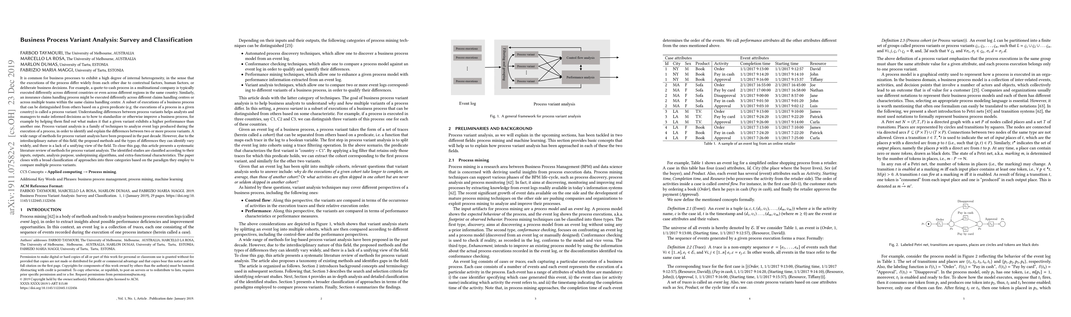 This paper reviews and classifies methods for analyzing business process variants, highlighting the discrepancies in process executions due to different situational factors. It proposes a systematic approach for identifying and addressing these variations to improve process models.