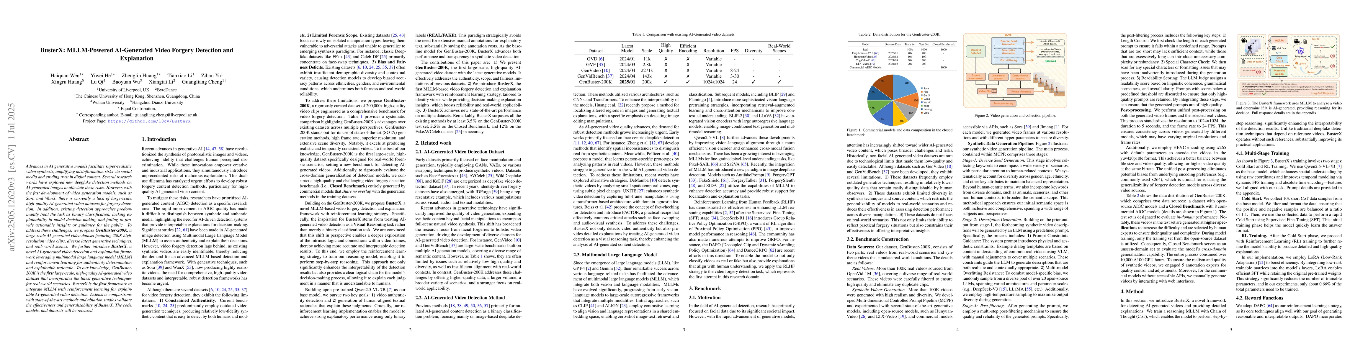Advances in AI generative models facilitate super-realistic video synthesis, amplifying misinformation risks via social media and eroding trust in digital content. Several research works have explored new deepfake detection methods on AI-generated images to alleviate these risks. However, with the fast development of video generation models, such as Sora and WanX, there is currently a lack of large-scale, high-quality AI-generated video datasets for forgery detection. In addition, existing detection approaches predominantly treat the task as binary classification, lacking explainability in model decision-making and failing to provide actionable insights or guidance for the public. To address these challenges, we propose \textbf{GenBuster-200K}, a large-scale AI-generated video dataset featuring 200K high-resolution video clips, diverse latest generative techniques, and real-world scenes. We further introduce \textbf{BusterX}, a novel AI-generated video detection and explanation framework leveraging multimodal large language model (MLLM) and reinforcement learning for authenticity determination and explainable rationale. To our knowledge, GenBuster-200K is the {\it \textbf{first}} large-scale, high-quality AI-generated video dataset that incorporates the latest generative techniques for real-world scenarios. BusterX is the {\it \textbf{first}} framework to integrate MLLM with reinforcement learning for explainable AI-generated video detection. Extensive comparisons with state-of-the-art methods and ablation studies validate the effectiveness and generalizability of BusterX. The code, models, and datasets will be released.