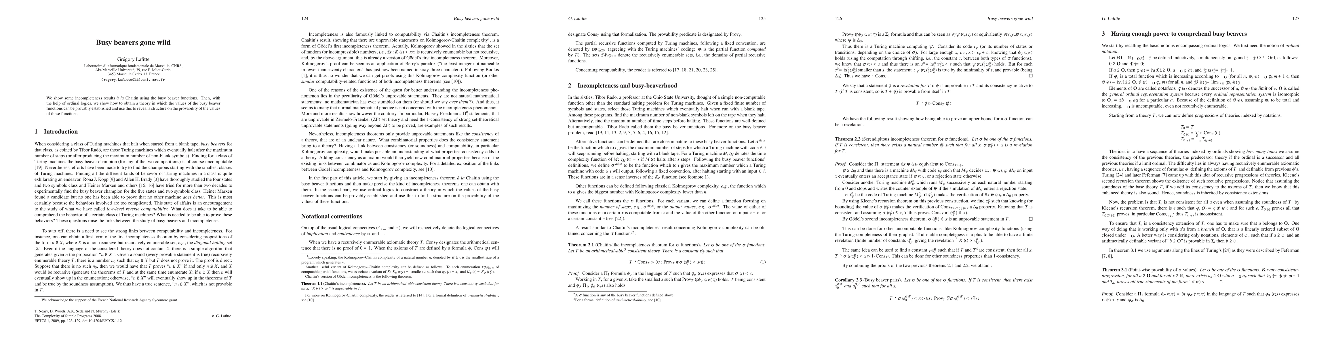 We show some incompleteness results a la Chaitin using the busy beaver functions. Then, with the help of ordinal logics, we show how to obtain a theory in which the values of the busy beaver functions can be provably established and use this to reveal a structure on the provability of the values of these functions.