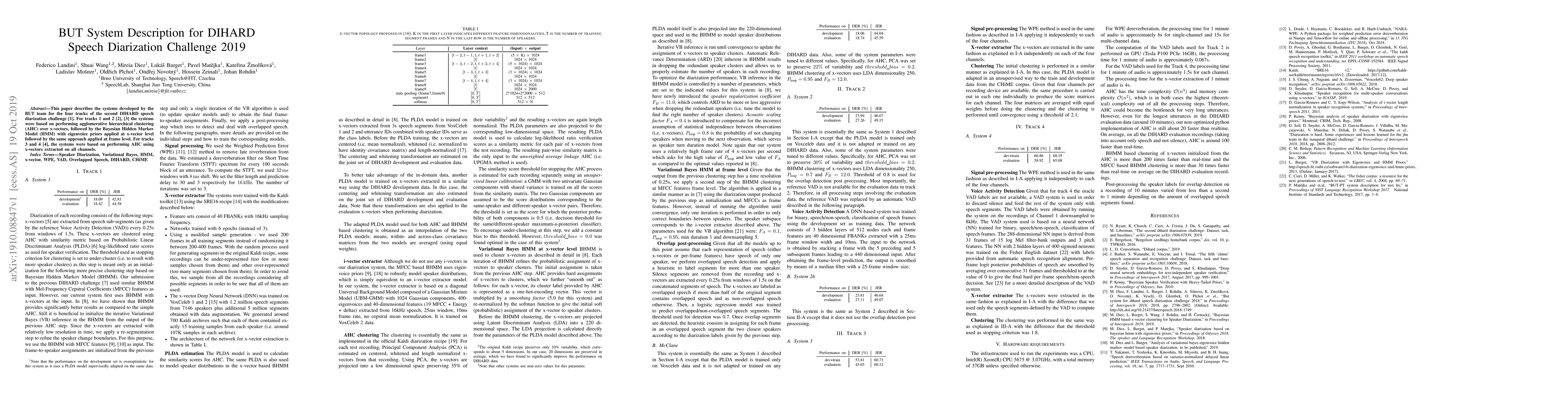 Researchers developed speech diarization systems for the 2019 DIHARD challenge using agglomerative hierarchical clustering (AHC) with x-vectors and Bayesian Hidden Markov Models (HMMs), achieving promising results across four tracks.