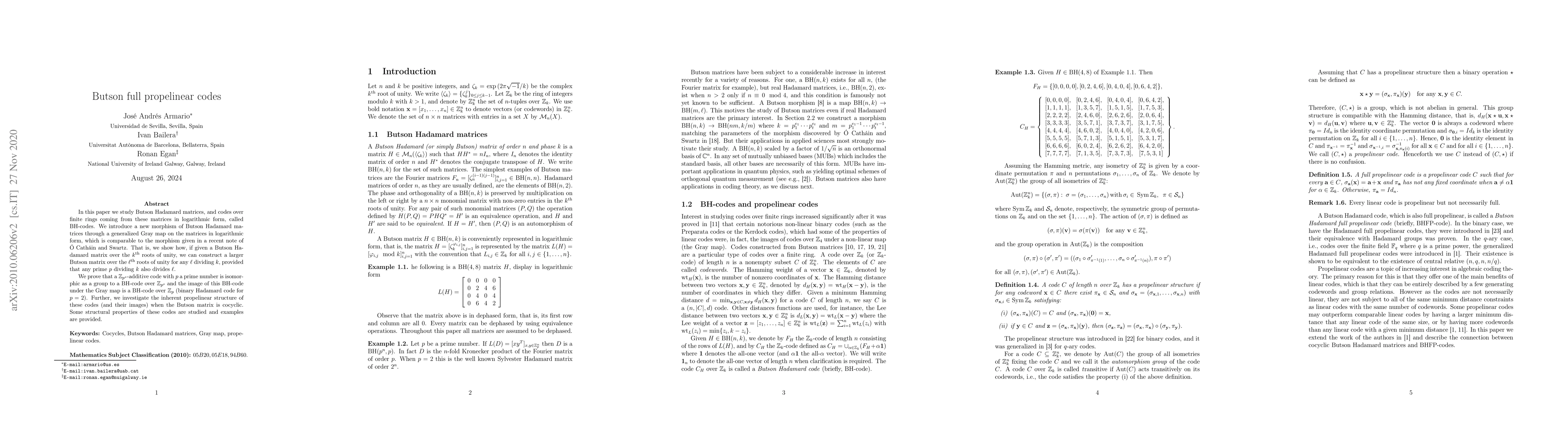 This paper explores Butson Hadamard matrices and their associated logarithmic codes, termed BH-codes, introducing a new morphism via a generalized Gray map. It demonstrates the construction of larger Butson matrices from smaller ones under specific conditions and proves the isomorphism of $\mathbb{Z}_{p^s}$-additive codes to BH-codes, highlighting their propelinear structure.