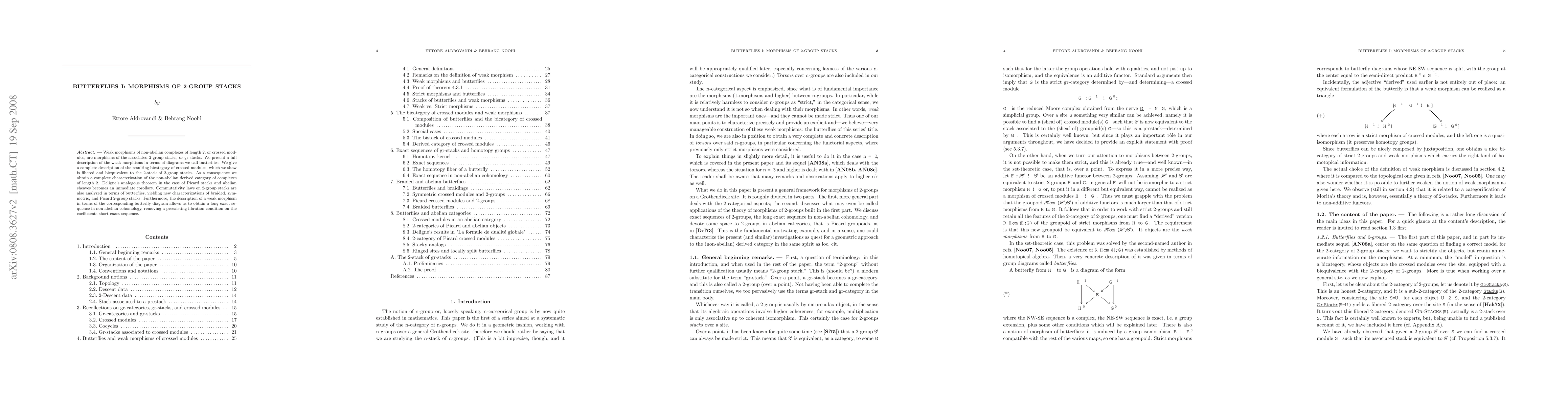 This paper describes weak morphisms of crossed modules as "butterfly" diagrams and presents a complete bicategory of these morphisms, showing equivalence to the 2-stack of 2-group stacks. It also characterizes non-abelian derived categories and analyzes commutativity laws in terms of these butterflies.