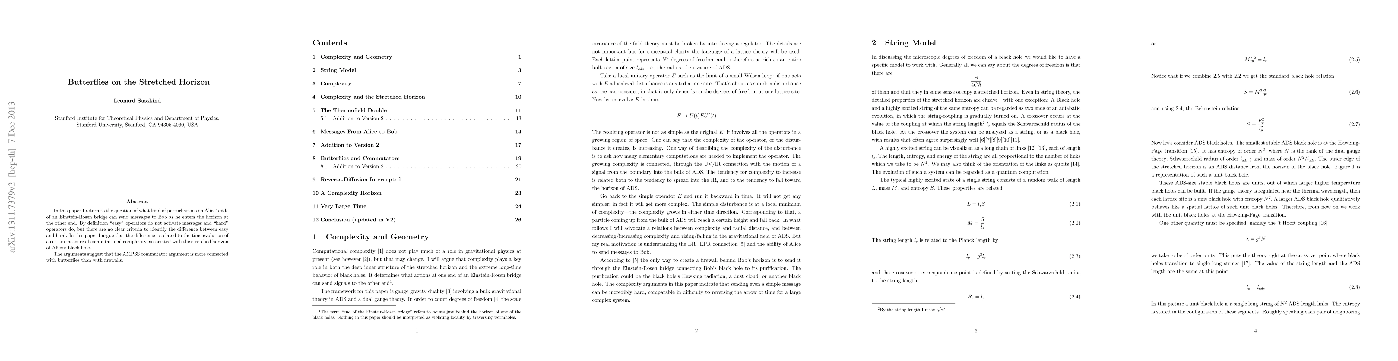 In this paper I return to the question of what kind of perturbations on Alice's side of an Einstein-Rosen bridge can send messages to Bob as he enters the horizon at the other end. By definition "easy" operators do not activate messages and "hard" operators do, but there are no clear criteria to identify the difference between easy and hard. In this paper I argue that the difference is related to the time evolution of a certain measure of computational complexity, associated with the stretched horizon of Alice's black hole. The arguments suggest that the AMPSS commutator argument is more connected with butterflies than with firewalls.