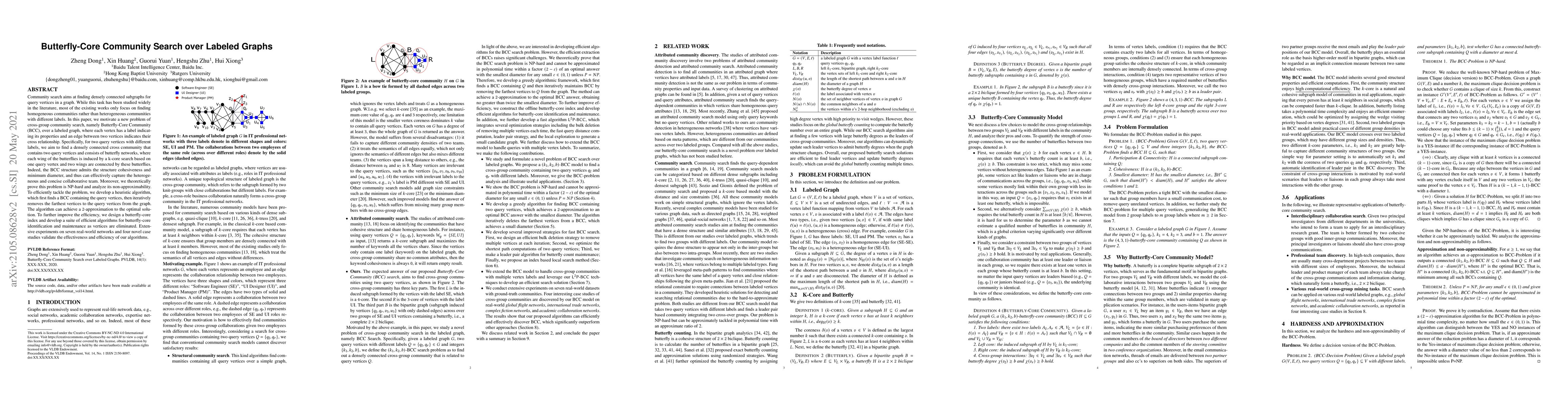 Community search aims at finding densely connected subgraphs for query vertices in a graph. While this task has been studied widely in the literature, most of the existing works only focus on finding homogeneous communities rather than heterogeneous communities with different labels. In this paper, we motivate a new problem of cross-group community search, namely Butterfly-Core Community (BCC), over a labeled graph, where each vertex has a label indicating its properties and an edge between two vertices indicates their cross relationship. Specifically, for two query vertices with different labels, we aim to find a densely connected cross community that contains two query vertices and consists of butterfly networks, where each wing of the butterflies is induced by a k-core search based on one query vertex and two wings are connected by these butterflies. Indeed, the BCC structure admits the structure cohesiveness and minimum diameter, and thus can effectively capture the heterogeneous and concise collaborative team. Moreover, we theoretically prove this problem is NP-hard and analyze its non-approximability. To efficiently tackle the problem, we develop a heuristic algorithm, which first finds a BCC containing the query vertices, then iteratively removes the farthest vertices to the query vertices from the graph. The algorithm can achieve a 2-approximation to the optimal solution. To further improve the efficiency, we design a butterfly-core index and develop a suite of efficient algorithms for butterfly-core identification and maintenance as vertices are eliminated. Extensive experiments on eight real-world networks and four novel case studies validate the effectiveness and efficiency of our algorithms.