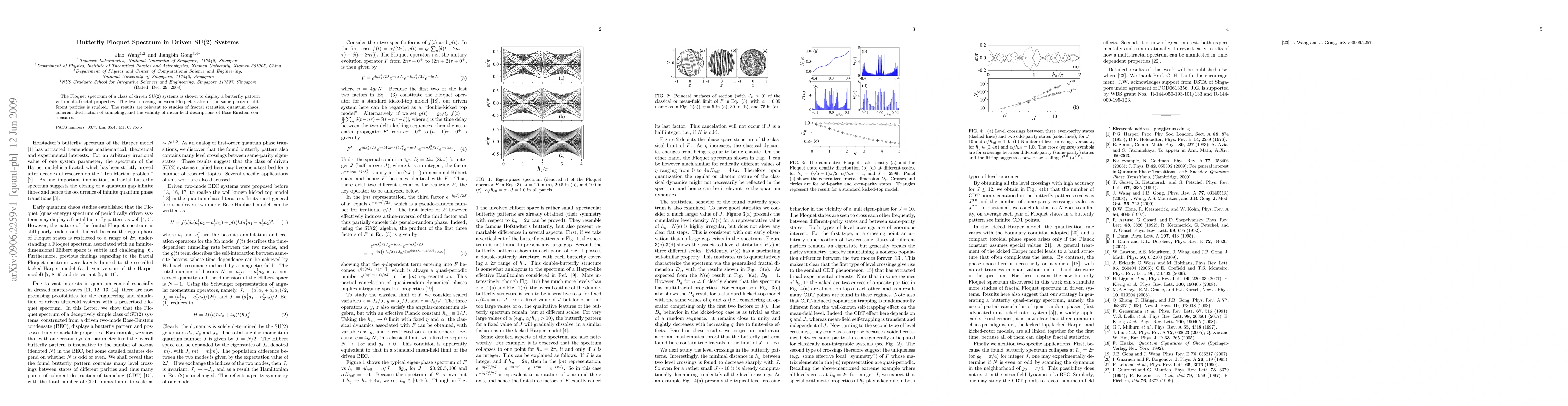 The research reveals a butterfly-shaped Floquet spectrum in driven SU(2) systems, characterized by multi-fractal properties, and investigates level crossings between states of the same or different parities. This work contributes to understanding quantum chaos and the coherent destruction of tunneling.