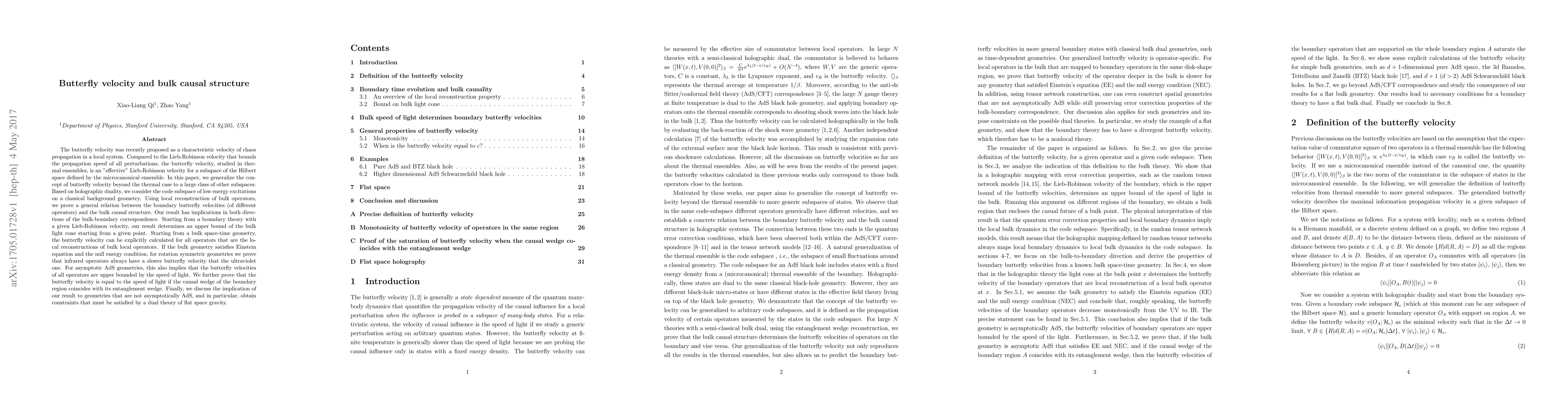 This paper generalizes the butterfly velocity concept beyond thermal systems to various subspaces, establishing a relation between boundary butterfly velocities and bulk causal structure via holographic duality. It shows that the butterfly velocity can determine the bulk light cone and provides constraints for dual theories of flat space gravity.