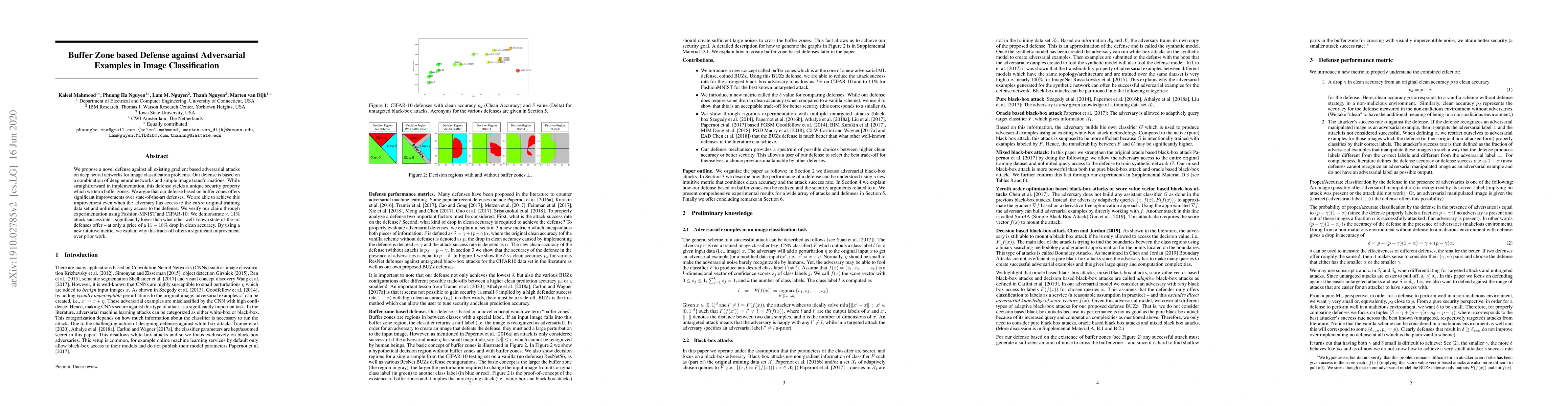 The paper introduces BUZz, a defense method against adversarial attacks on image classification models using deep neural networks and image transformations, creating 'buffer zones' for robustness. Experiments on Fashion-MNIST and CIFAR-10 datasets show less than 11% attack success rate with only a 11-18% clean accuracy drop, outperforming existing defenses.