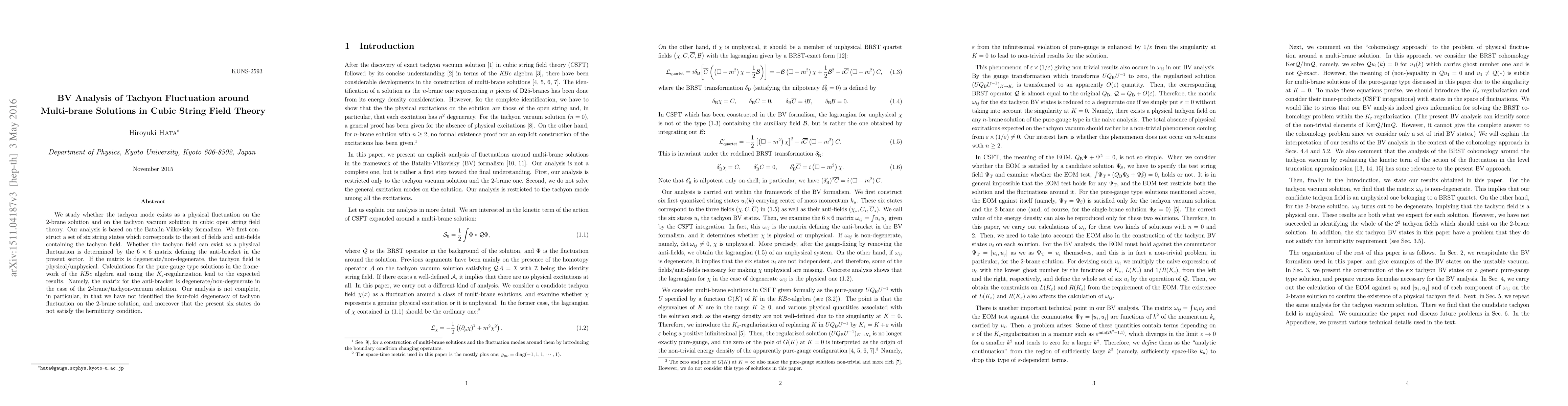 We study whether the tachyon mode exists as a physical fluctuation on the 2-brane solution and on the tachyon vacuum solution in cubic open string field theory. Our analysis is based on the Batalin-Vilkovisky formalism. We first construct a set of six string states which corresponds to the set of fields and anti-fields containing the tachyon field. Whether the tachyon field can exist as a physical fluctuation is determined by the 6x6 matrix defining the anti-bracket in the present sector. If the matrix is degenerate/non-degenerate, the tachyon field is physical/unphysical. Calculations for the pure-gauge type solutions in the framework of the KBc algebra and using the Ke-regularization lead to the expected results. Namely, the matrix for the anti-bracket is degenerate/non-degenerate in the case of the 2-brane/tachyon-vacuum solution. Our analysis is not complete, in particular, in that we have not identified the four-fold degeneracy of tachyon fluctuation on the 2-brane solution, and moreover that the present six states do not satisfy the hermiticity condition.