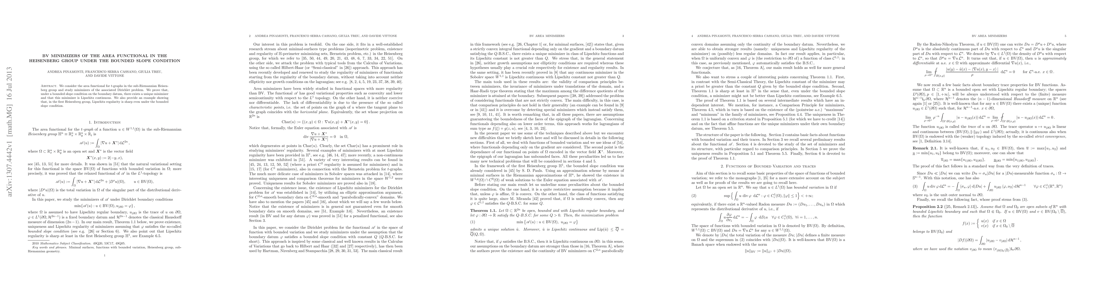 This paper investigates the area functional for t-graphs in the sub-Riemannian Heisenberg group, proving the existence and uniqueness of a Lipschitz continuous minimizer under a bounded slope condition on the boundary. An example demonstrates that Lipschitz regularity is optimal in the first Heisenberg group.