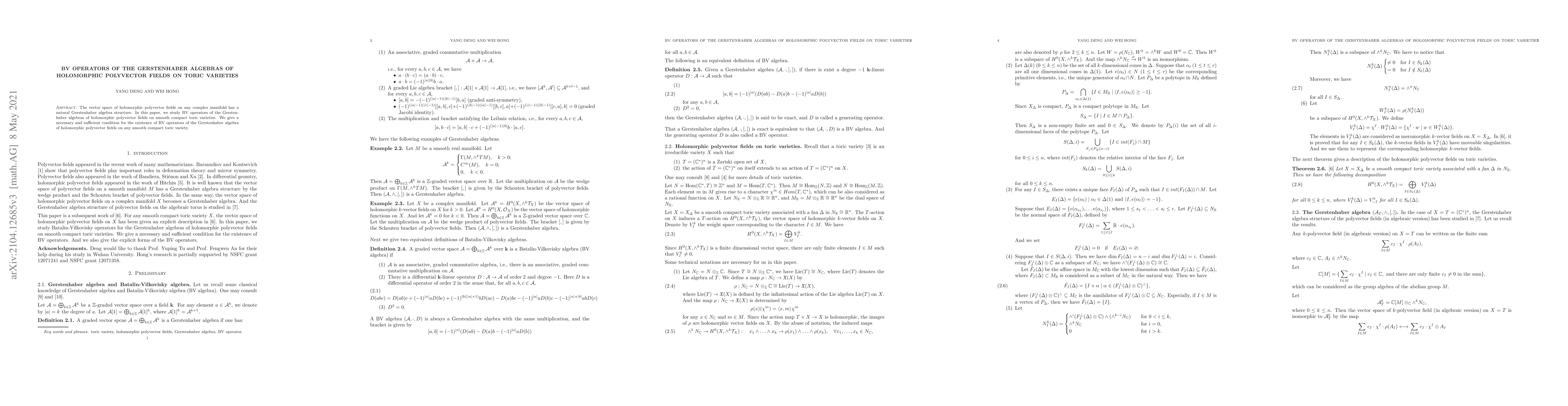 This paper investigates BV operators within Gerstenhaber algebras formed by holomorphic polyvector fields on smooth compact toric varieties, providing a necessary and sufficient condition for their existence.