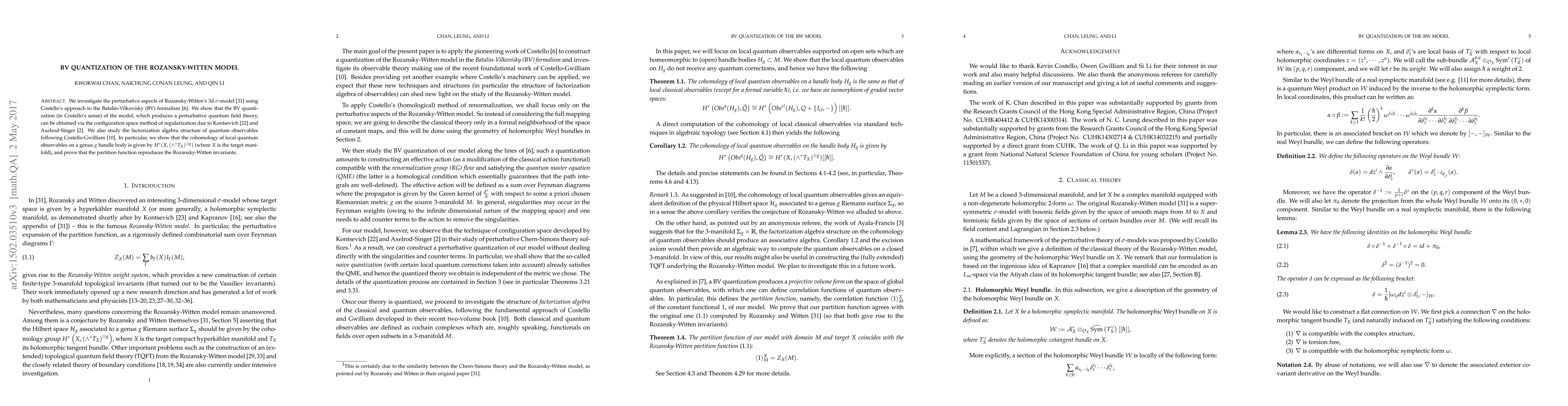This research paper applies Costello's approach to Batalin-Vilkovisky formalism to study the Rozansky-Witten model, resulting in a perturbative quantum field theory that reproduces the model's invariants.