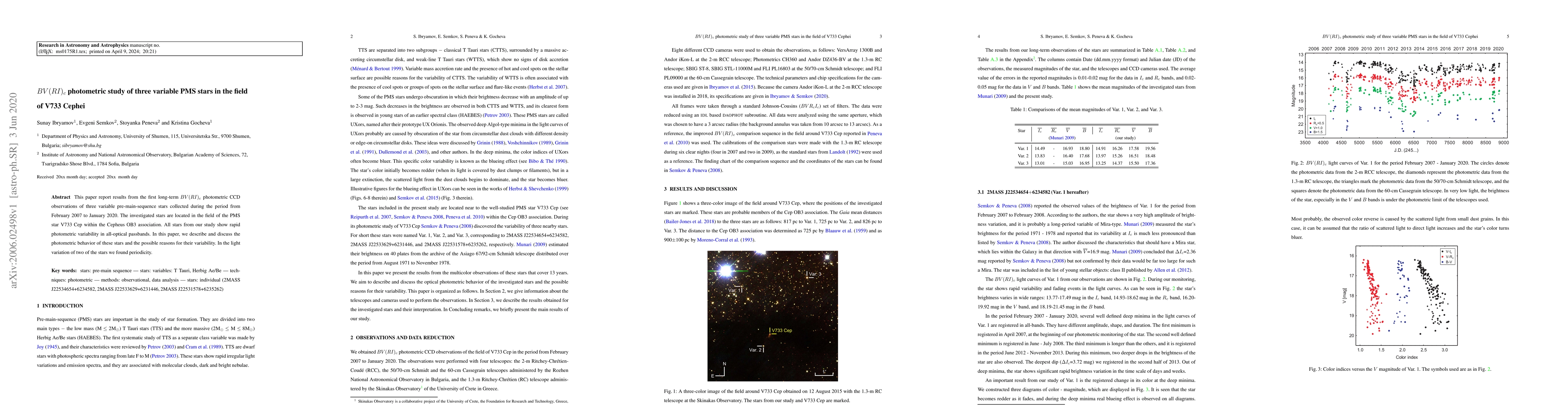 This study presents long-term BV(RI)c photometric observations of three variable pre-main-sequence stars near V733 Cephei in the Cepheus OB3 association, revealing rapid variability and periodicity in the light curves of two stars. The paper discusses the photometric behavior and potential causes of this variability.