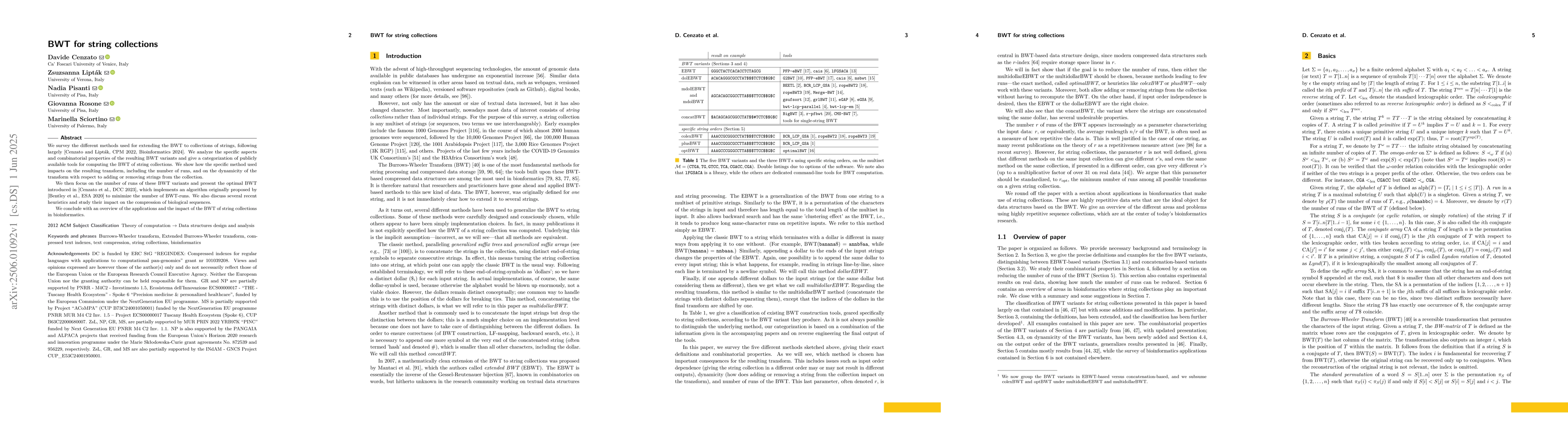 This paper surveys methods for extending Burrows-Wheeler Transform (BWT) to collections of strings, analyzing their properties and impacts. It categorizes tools for computing BWT of string collections, focuses on minimizing BWT runs with an optimal variant, and discusses heuristics for compressing biological sequences, concluding with applications in bioinformatics.