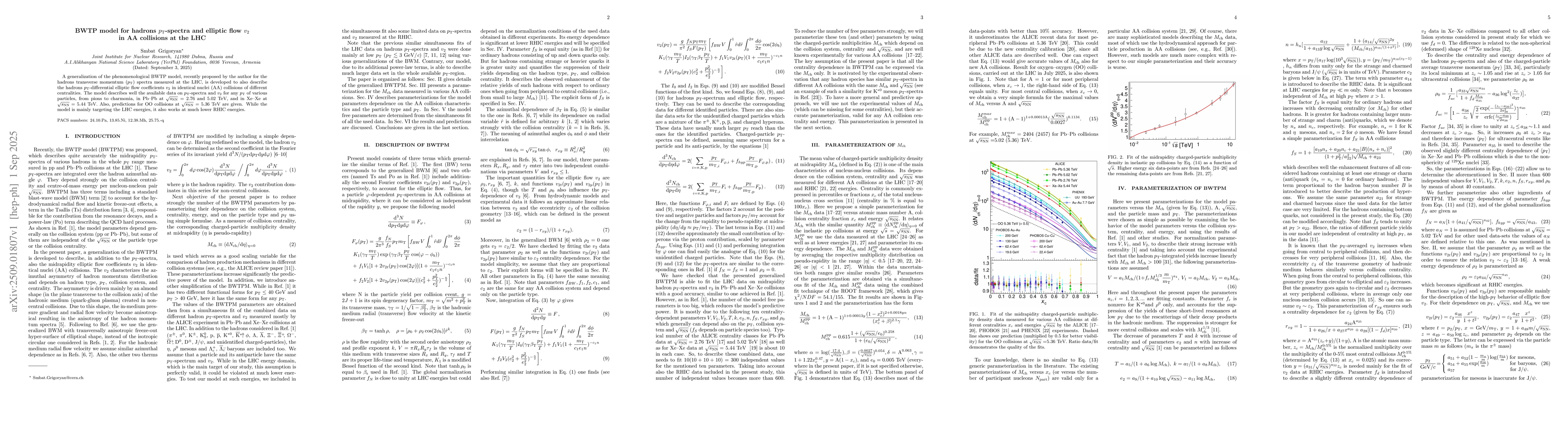 A generalization of the phenomenological BWTP model, recently proposed by the author for the hadrons transverse momentum ($p_\textrm{T}$) spectra measured at the LHC, is developed to also describe the hadrons $p_\textrm{T}$-differential elliptic flow coefficients $v_2$ in identical nuclei (AA) collisions of different centralities. The model describes well the available data on $p_\textrm{T}$-spectra and $v_2$ for any $p_\textrm{T}$ of various particles, from pions to charmonia, in Pb--Pb at $\sqrt{s_\mathrm{NN}}=$ 2.76 and 5.02~TeV, and in Xe--Xe at $\sqrt{s_\mathrm{NN}}=$ 5.44~TeV. Also, predictions for OO collisions at $\sqrt{s_\mathrm{NN}}=$ 5.36~TeV are given. While the model is mainly targeting the LHC energies, it also works at much lower RHIC energies.