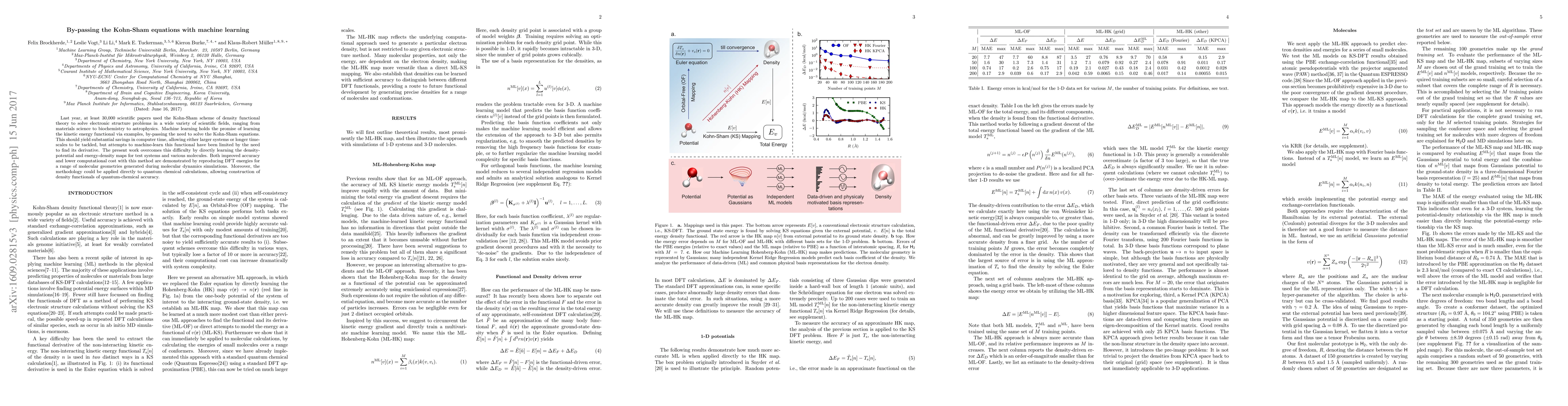 This paper proposes a machine learning approach to bypass the Kohn-Sham equations in density functional theory, directly learning density-potential and energy-density maps to achieve both improved accuracy and lower computational costs for solving electronic structure problems. The method demonstrates effectiveness in reproducing DFT energies for various molecular geometries.