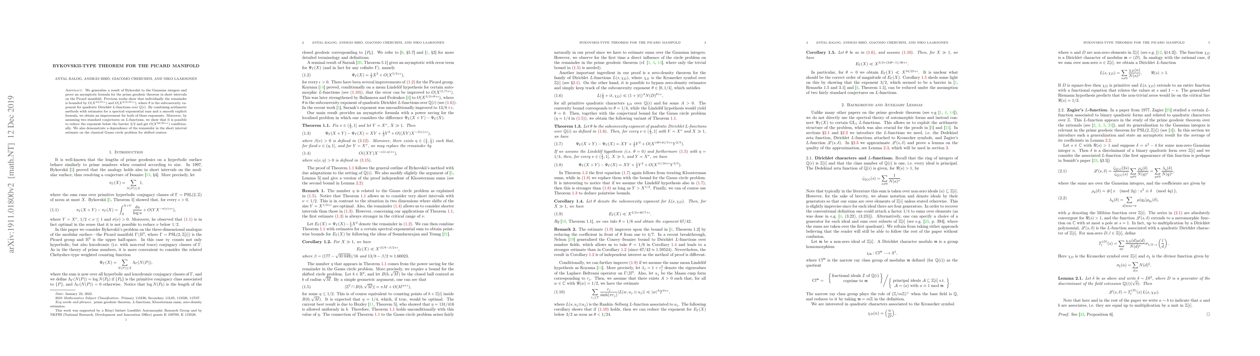 This paper generalises a Bykovskii-type theorem to the Gaussian integers, proving an improved asymptotic formula for the prime geodesic theorem on the Picard manifold. The authors achieve better bounds for the remainder term, reducing it to $O(X^{34/23+\epsilon})$ under standard conjectures, and link the results to the Gauss circle problem.