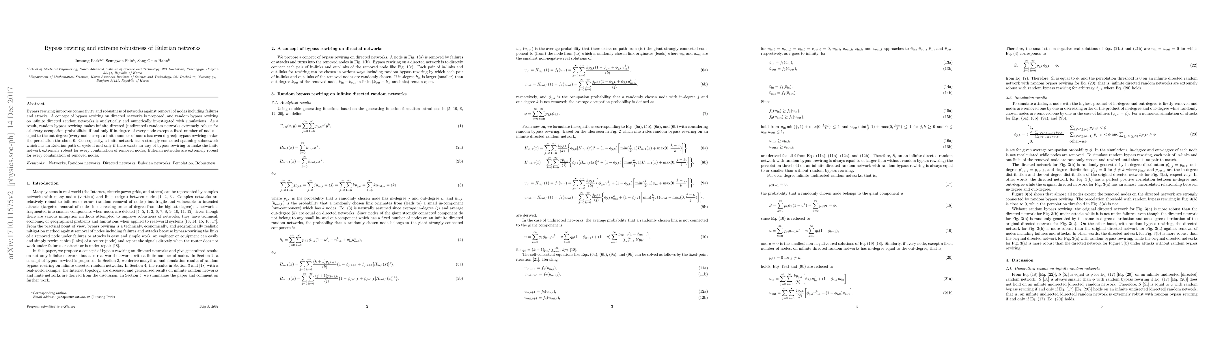 Bypass rewiring improves connectivity and robustness of networks against removal of nodes including failures and attacks. A concept of bypass rewiring on directed networks is proposed, and random bypass rewiring on infinite directed random networks is analytically and numerically investigated with simulations. As a result, random bypass rewiring makes infinite directed (undirected) random networks extremely robust for arbitrary occupation probabilities if and only if in-degree of every node except a fixed number of nodes is equal to the out-degree (every node except a finite number of nodes has even degree); bypass rewiring makes the percolation threshold 0. Consequently, a finite network has a strongly connected spanning subnetwork which has an Eulerian path or cycle if and only if there exists an way of bypass rewiring to make the finite network extremely robust for every combination of removed nodes; Eulerian networks are extremely robust for every combination of removed nodes.
