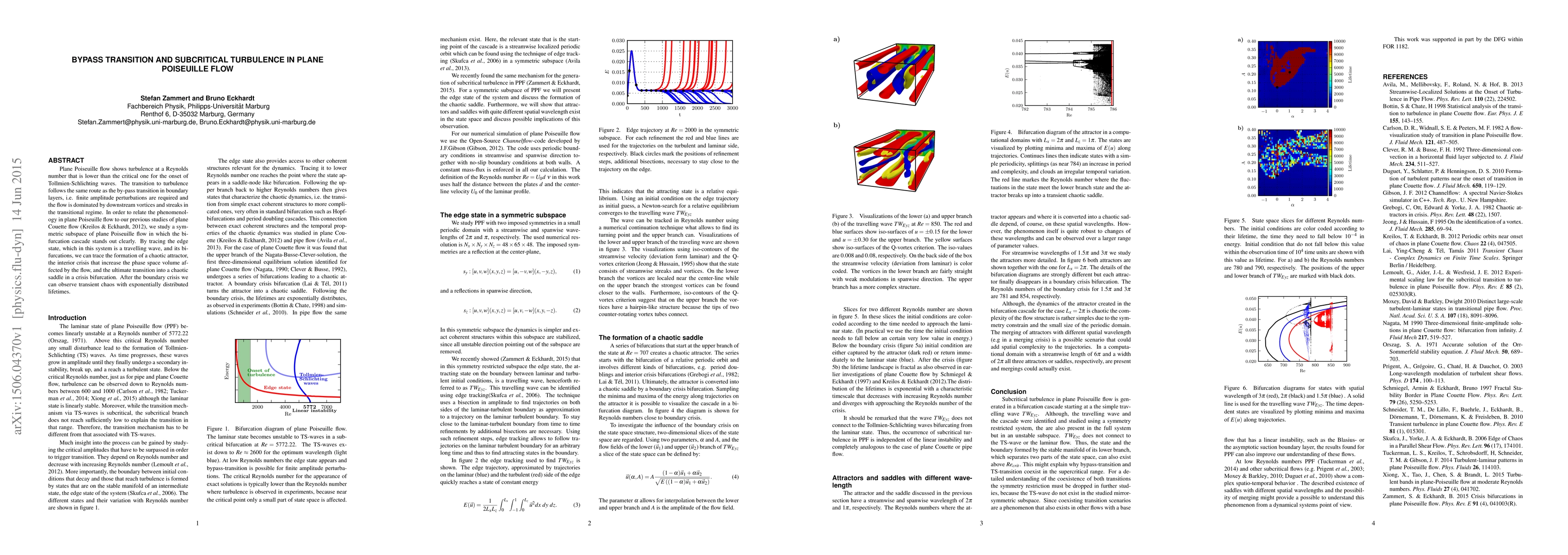 This paper investigates the bypass transition to turbulence in plane Poiseuille flow, showing that it follows a similar route to boundary layer transitions, characterized by finite amplitude perturbations and downstream vortices. The study focuses on a symmetric subspace to trace bifurcation cascades leading to chaos, highlighting the formation of a chaotic attractor and transient chaos post-boundary crisis.
