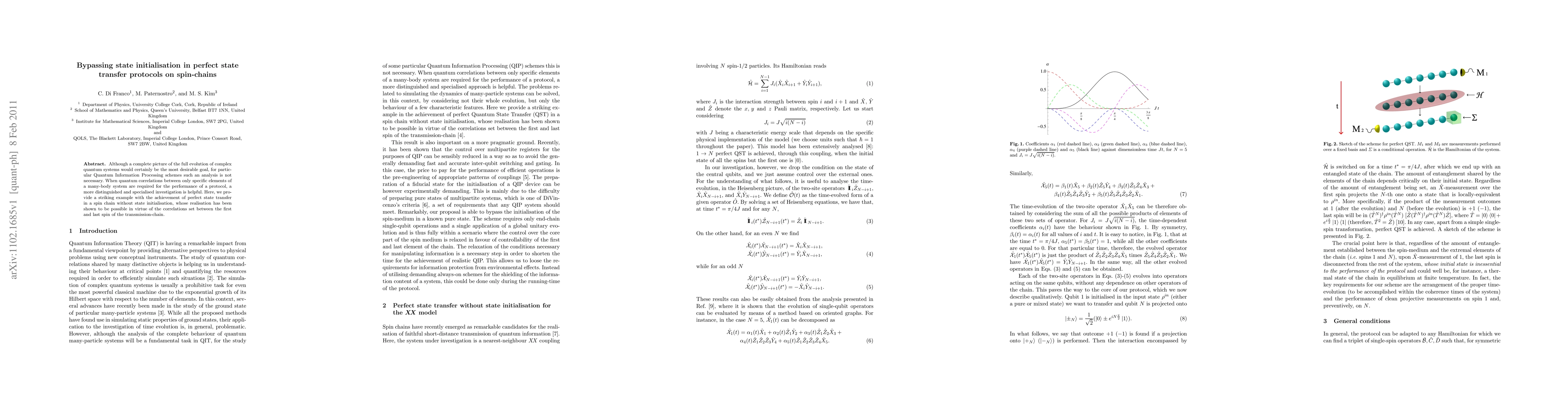 Although a complete picture of the full evolution of complex quantum systems would certainly be the most desirable goal, for particular Quantum Information Processing schemes such an analysis is not necessary. When quantum correlations between only specific elements of a many-body system are required for the performance of a protocol, a more distinguished and specialised investigation is helpful. Here, we provide a striking example with the achievement of perfect state transfer in a spin chain without state initialisation, whose realisation has been shown to be possible in virtue of the correlations set between the first and last spin of the transmission-chain.