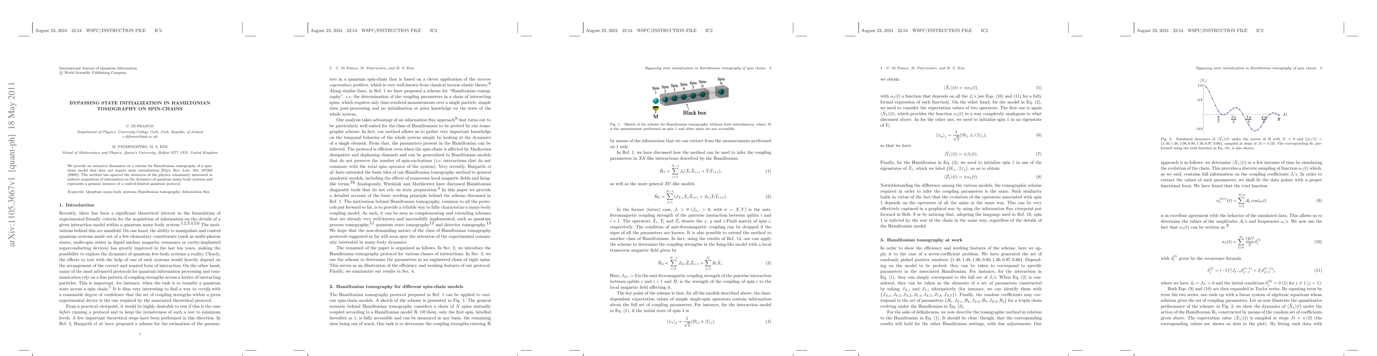 We provide an extensive discussion on a scheme for Hamiltonian tomography of a spin-chain model that does not require state initialization [Phys. Rev. Lett. 102, 187203 (2009)]. The method has spurred the attention of the physics community interested in indirect acquisition of information on the dynamics of quantum many-body systems and represents a genuine instance of a control-limited quantum protocol.