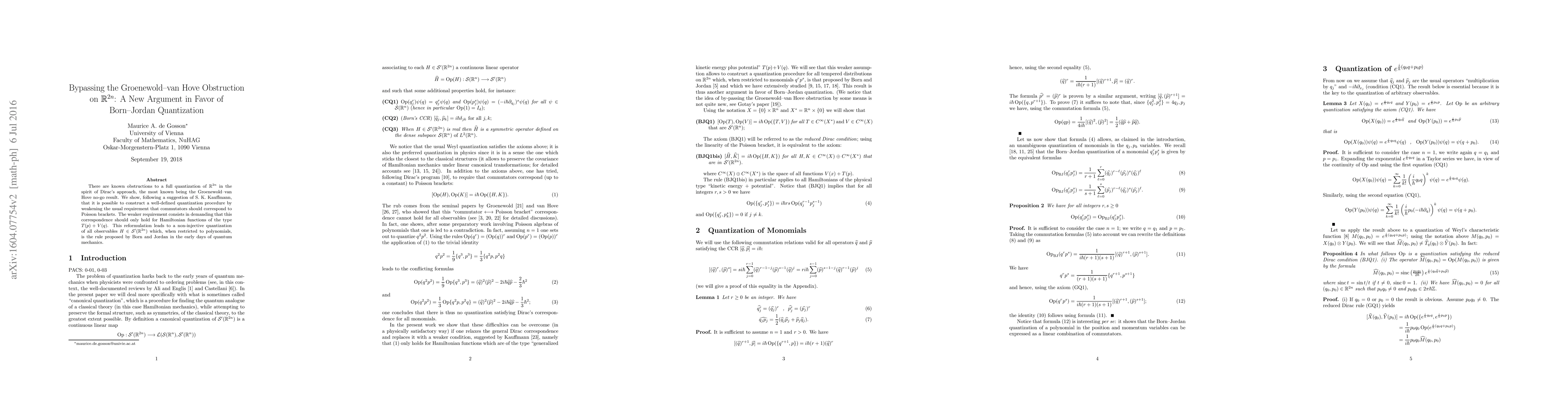 There are known obstructions to a full quantization in the spirit of Dirac's approach, the most known being the Groenewold-van Hove no-go result. We show, following a suggestion of S. K. Kauffmann, that it is possible to construct a well-defined quantization procedure by weakening the usual requirement that commutators should correspond to Poisson brackets. The weaker requirement consists in demanding that this correspondence should only hold for Hamiltonian functions of the type T(p)+V(q). This reformulation leads to a non-injective quantization of all observables which, when restricted to polynomials, is the rule proposed by Born and Jordan in the early days of quantum mechanics.