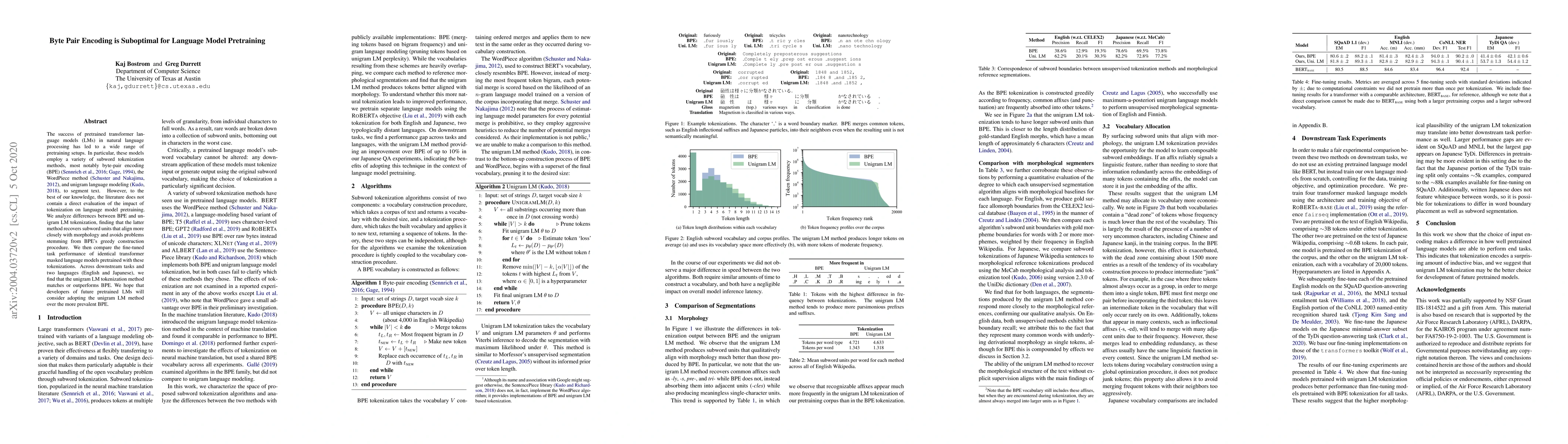 Researchers found that unigram language modeling tokenization outperforms byte-pair encoding in transformer language models, especially on downstream tasks and morphological analysis.