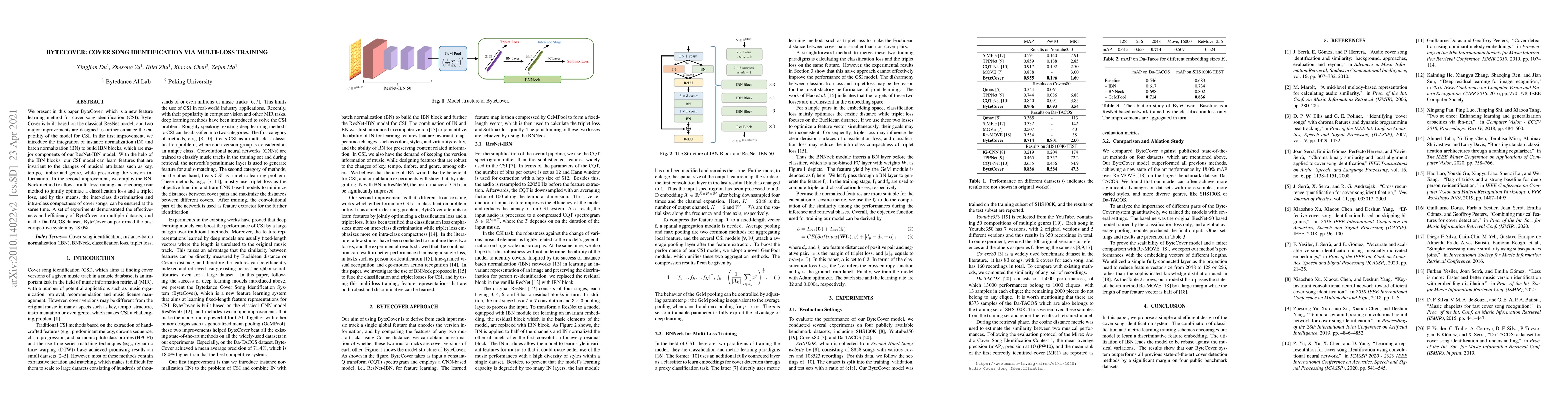 ByteCover is a new feature learning method for cover song identification that improves upon classical ResNet models with instance normalization and multi-loss training, achieving 20.9% better performance than the best competitive system in one dataset.