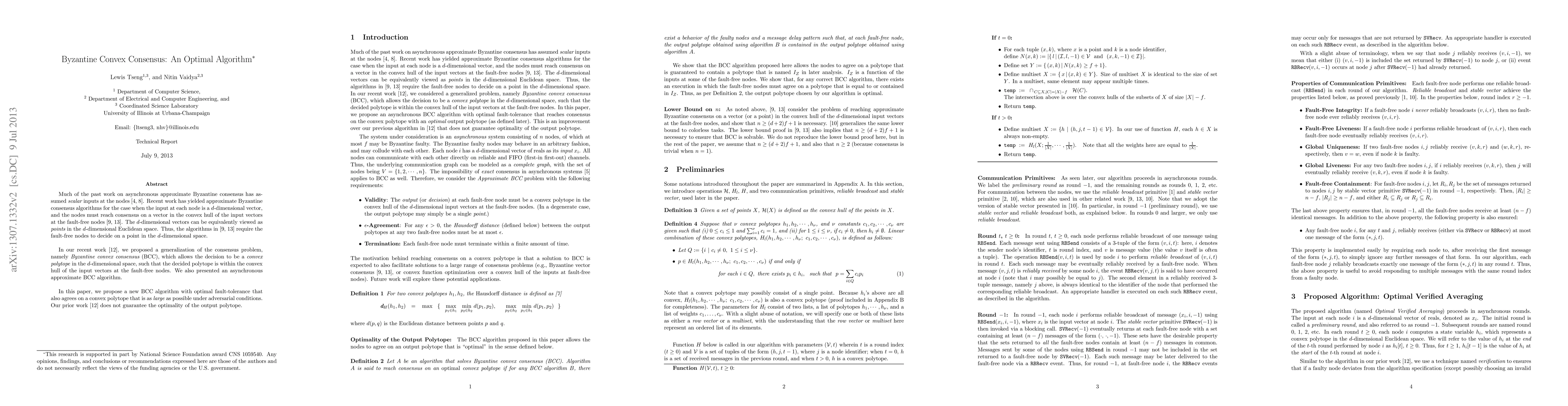 Much of the past work on asynchronous approximate Byzantine consensus has assumed scalar inputs at the nodes [4, 8]. Recent work has yielded approximate Byzantine consensus algorithms for the case when the input at each node is a d-dimensional vector, and the nodes must reach consensus on a vector in the convex hull of the input vectors at the fault-free nodes [9, 13]. The d-dimensional vectors can be equivalently viewed as points in the d-dimensional Euclidean space. Thus, the algorithms in [9, 13] require the fault-free nodes to decide on a point in the d-dimensional space. In our recent work [arXiv:/1307.1051], we proposed a generalization of the consensus problem, namely Byzantine convex consensus (BCC), which allows the decision to be a convex polytope in the d-dimensional space, such that the decided polytope is within the convex hull of the input vectors at the fault-free nodes. We also presented an asynchronous approximate BCC algorithm. In this paper, we propose a new BCC algorithm with optimal fault-tolerance that also agrees on a convex polytope that is as large as possible under adversarial conditions. Our prior work [arXiv:/1307.1051] does not guarantee the optimality of the output polytope.