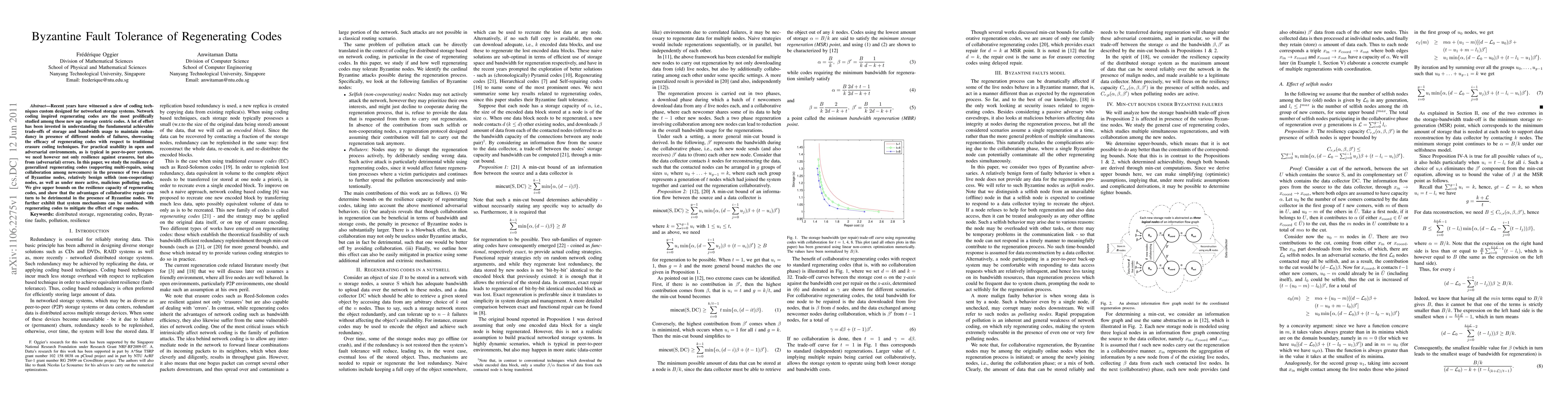 This paper investigates the Byzantine fault tolerance of generalized regenerating codes, focusing on their resilience against both selfish and malicious nodes in peer-to-peer systems. It provides upper bounds on the resilience capacity and demonstrates that while collaborative repair can be advantageous, it may become detrimental in the presence of Byzantine nodes, suggesting system mechanisms to mitigate rogue node effects.