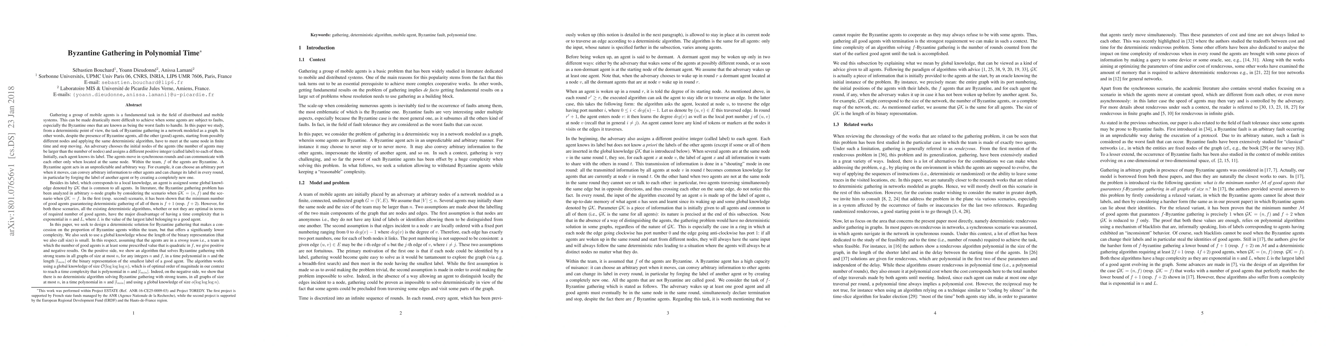 We study the task of Byzantine gathering in a network modeled as a graph. Despite the presence of Byzantine agents, all the other (good) agents, starting from possibly different nodes and applying the same deterministic algorithm, have to meet at the same node in finite time and stop moving. An adversary chooses the initial nodes of the agents and assigns a different label to each of them. The agents move in synchronous rounds and communicate with each other only when located at the same node. Within the team, f of the agents are Byzantine. A Byzantine agent acts in an unpredictable way: in particular it may forge the label of another agent or create a completely new one. Besides its label, which corresponds to a local knowledge, an agent is assigned some global knowledge GK that is common to all agents. In literature, the Byzantine gathering problem has been analyzed in arbitrary n-node graphs by considering the scenario when GK=(n,f) and the scenario when GK=f. In the first (resp. second) scenario, it has been shown that the minimum number of good agents guaranteeing deterministic gathering of all of them is f+1 (resp. f+2). For both these scenarios, all the existing deterministic algorithms, whether or not they are optimal in terms of required number of good agents, have a time complexity that is exponential in n and L, where L is the largest label belonging to a good agent. In this paper, we seek to design a deterministic solution for Byzantine gathering that makes a concession on the proportion of Byzantine agents within the team, but that offers a significantly lower complexity. We also seek to use a global knowledge whose the length of the binary representation is small. Assuming that the agents are in a strong team i.e., a team in which the number of good agents is at least some prescribed value that is quadratic in f, we give positive and negative results.