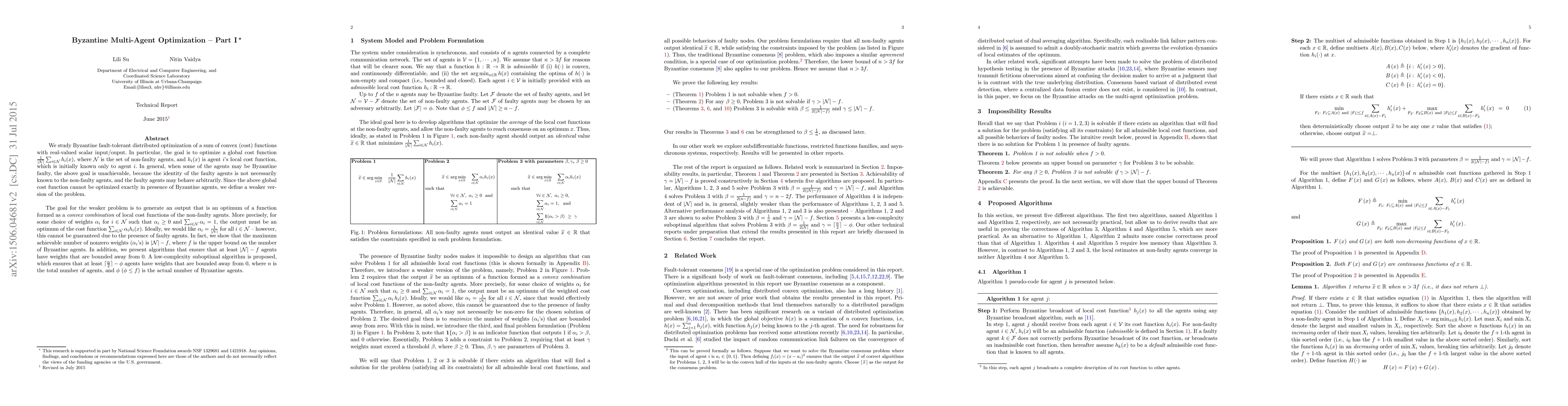 Researchers study how to optimize a global cost function in a distributed system where some agents may be faulty and intentionally behave arbitrarily, proposing algorithms that ensure at least a certain number of non-faulty agents achieve optimal weights.