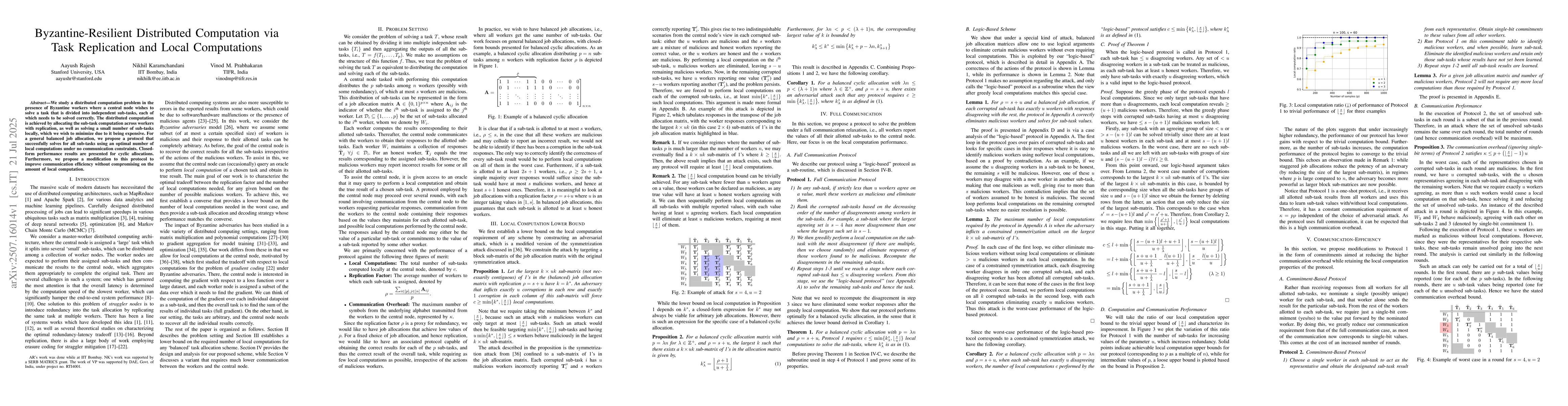 We study a distributed computation problem in the presence of Byzantine workers where a central node wishes to solve a task that is divided into independent sub-tasks, each of which needs to be solved correctly. The distributed computation is achieved by allocating the sub-task computation across workers with replication, as well as solving a small number of sub-tasks locally, which we wish to minimize due to it being expensive. For a general balanced job allocation, we propose a protocol that successfully solves for all sub-tasks using an optimal number of local computations under no communication constraints. Closed-form performance results are presented for cyclic allocations. Furthermore, we propose a modification to this protocol to improve communication efficiency without compromising on the amount of local computation.