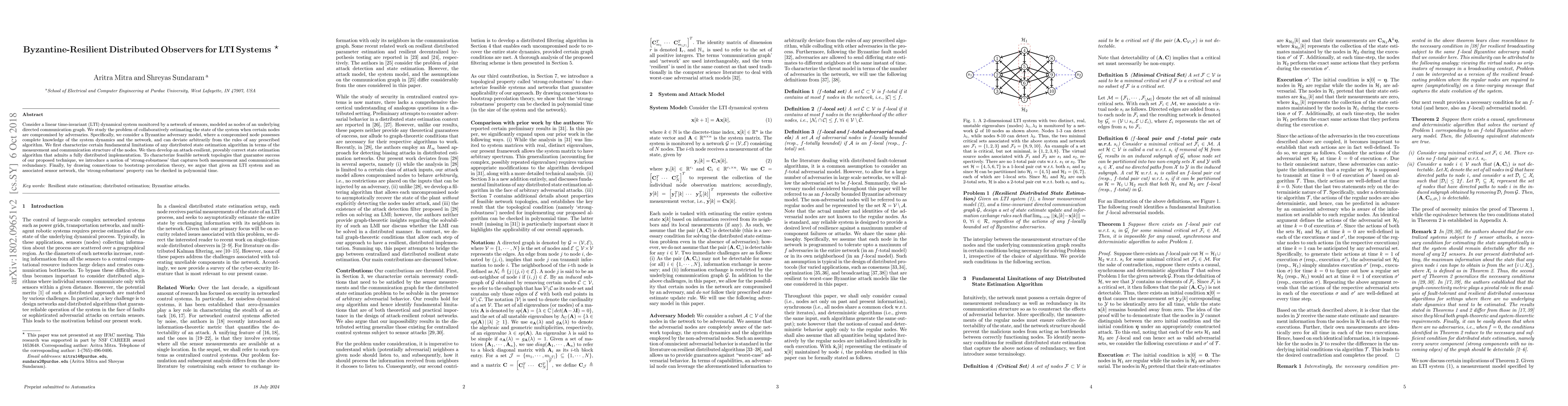 This paper develops a Byzantine-resilient distributed observer for linear time-invariant systems, addressing the challenge of compromised nodes in a sensor network. It introduces a fully distributed, provably correct estimation algorithm and defines `strong-robustness' to characterize feasible network topologies ensuring the algorithm's success.