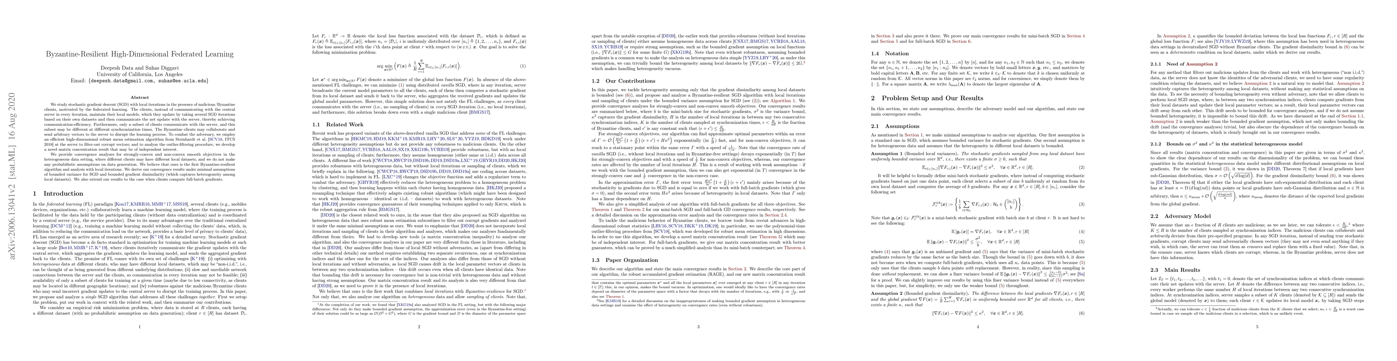 The paper employs a federated learning approach with local iterations, incorporating Byzantine-resilience through a robust mean estimation algorithm to filter out corrupt vectors. It analyzes convergence for both strongly-convex and non-convex smooth objectives in a heterogeneous data setting without probabilistic assumptions on data generation.
