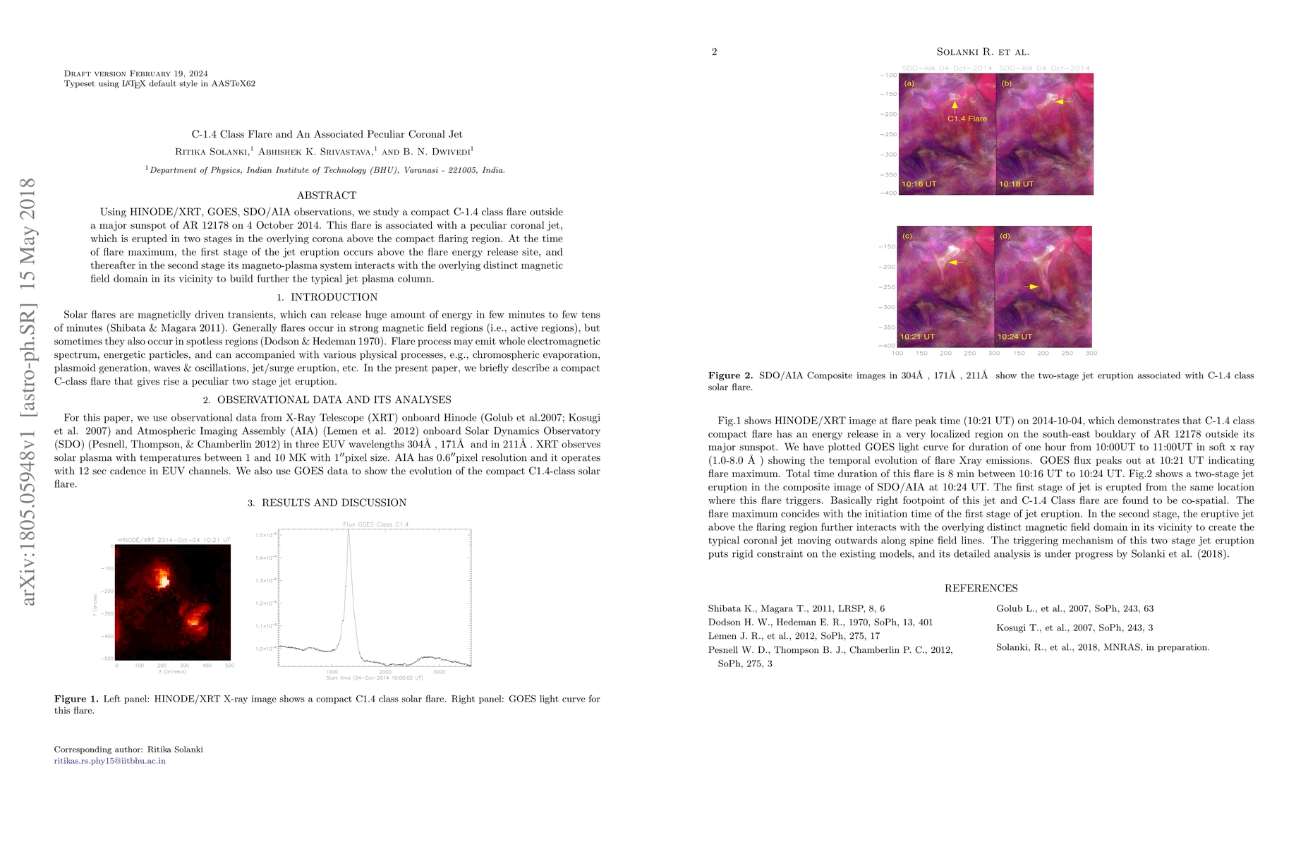This paper investigates a C-1.4 class solar flare observed on 4 October 2014 using HINODE/XRT, GOES, and SDO/AIA data, noting its association with a peculiar two-stage coronal jet eruption above the flare site, with significant interactions occurring during the flare maximum.