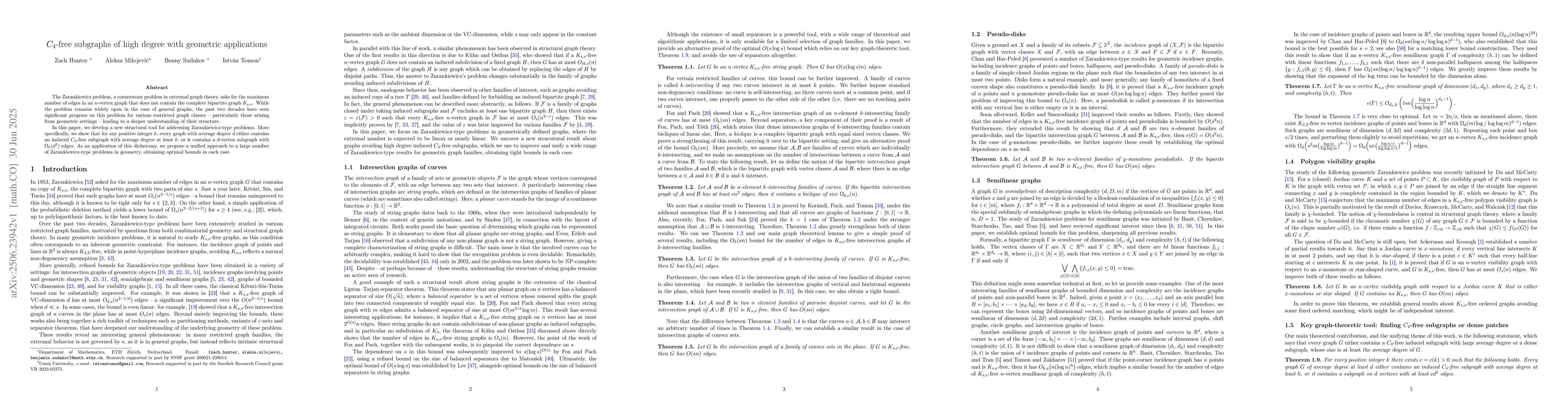 The Zarankiewicz problem, a cornerstone problem in extremal graph theory, asks for the maximum number of edges in an $n$-vertex graph that does not contain the complete bipartite graph $K_{s,s}$. While the problem remains widely open in the case of general graphs, the past two decades have seen significant progress on this problem for various restricted graph classes -- particularly those arising from geometric settings -- leading to a deeper understanding of their structure. In this paper, we develop a new structural tool for addressing Zarankiewicz-type problems. More specifically, we show that for any positive integer $k$, every graph with average degree $d$ either contains an induced $C_4$-free subgraph with average degree at least $k$, or it contains a $d$-vertex subgraph with $\Omega_k(d^2)$ edges. As an application of this dichotomy, we propose a unified approach to a large number of Zarankiewicz-type problems in geometry, obtaining optimal bounds in each case.