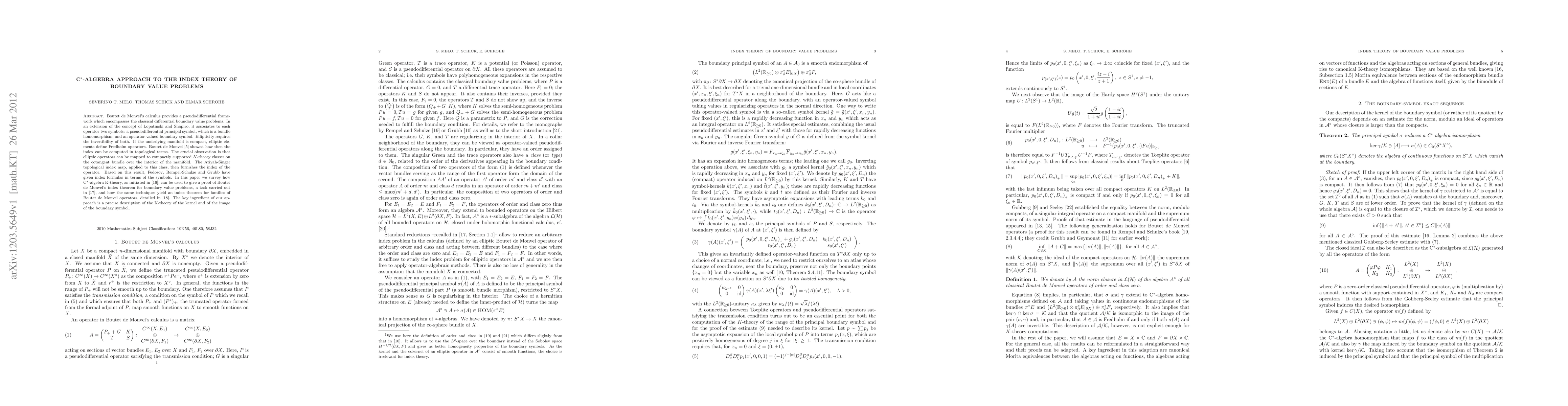 This paper surveys the application of C*-algebra K-theory to prove Boutet de Monvel's index theorem for boundary value problems, emphasizing the role of the boundary symbol's kernel and image in deriving the index formula. The approach extends to families of Boutet de Monvel operators, leveraging topological insights from ellipticity and Fredholm properties.