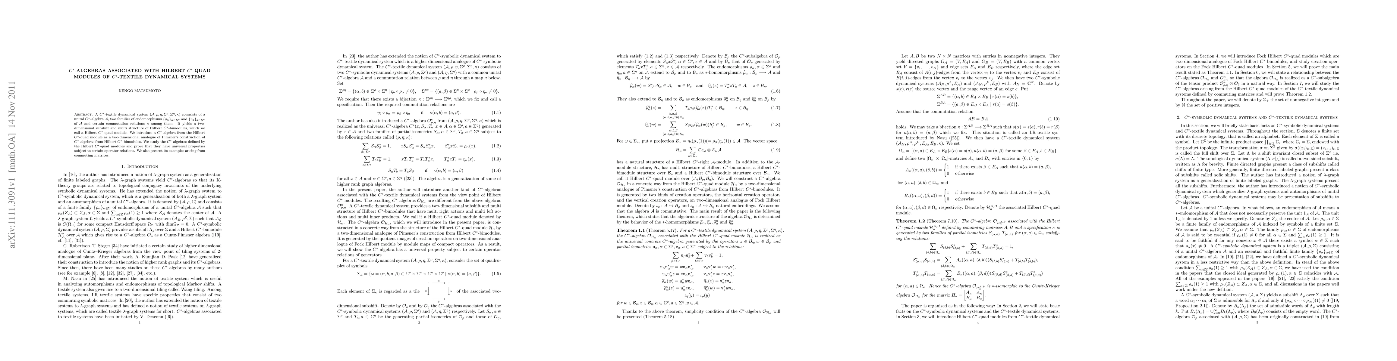 The paper explores $C^*$-textile dynamical systems, constructing $C^*$-algebras from their associated Hilbert $C^*$-quad modules, and demonstrates universal properties and operator relations of these algebras, with examples from commuting matrices.