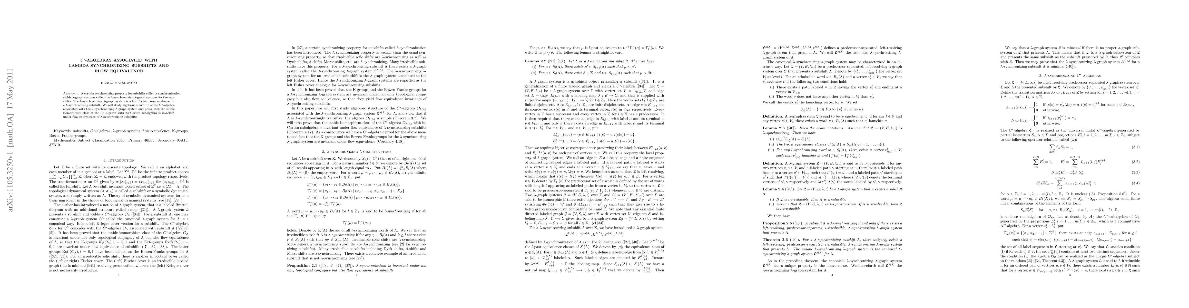 A certain synchronizing property for subshifts called $\lambda$-synchronization yields $\lambda$-graph systems called the $\lambda$-synchronizing $\lambda$-graph systems for the subshifts. The $\lambda$-synchronizing $\lambda$-graph system is a left Fischer cover analogue for a $\lambda$-synchronizing subshift. We will study algebraic structure of the $C^*$-algebra associated with the $\lambda$-synchronizing $\lambda$-graph system and prove that the stable isomorphism class of the $C^*$-algebra with its Cartan subalgebra is invariant under flow equivalence of $\lambda$-synchronizing subshifts.