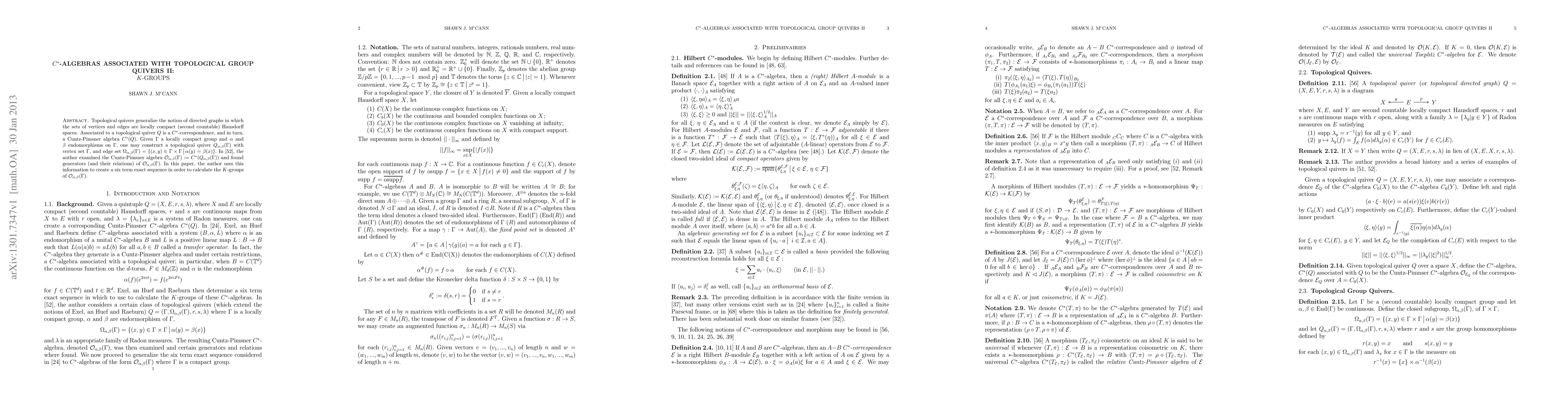 This paper explores $C^*$-algebras associated with topological quivers, specifically focusing on constructing a six term exact sequence to compute the $K$-groups of the Cuntz-Pimsner algebra $\cO_{\alpha,\beta}(\Gamma)$ derived from endomorphisms $\alpha$ and $\beta$ on a locally compact group $\Gamma$.
