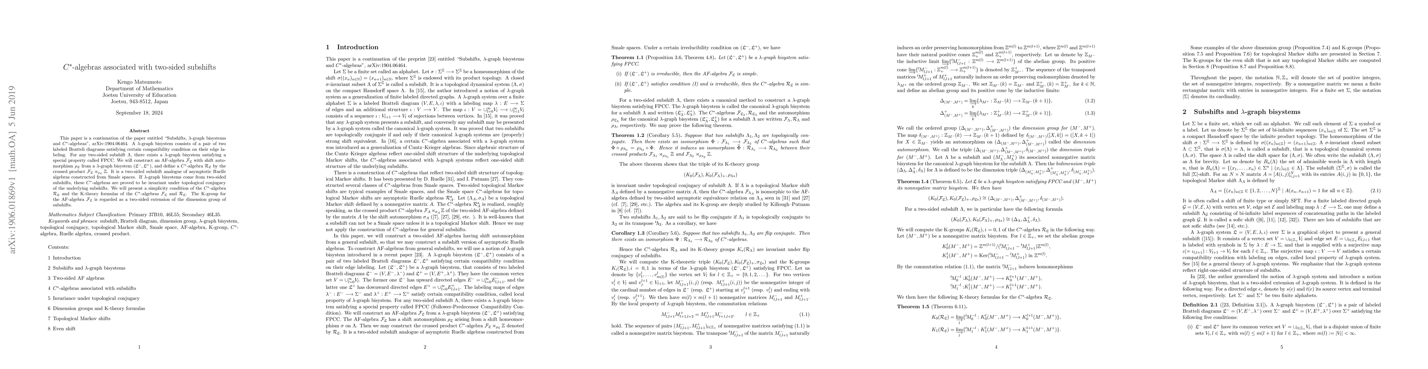 This paper constructs $C^*$-algebras from $\lambda$-graph bisystems associated with two-sided subshifts, proving these algebras' invariance under topological conjugacy and presenting their simplicity conditions and K-theory formulas.