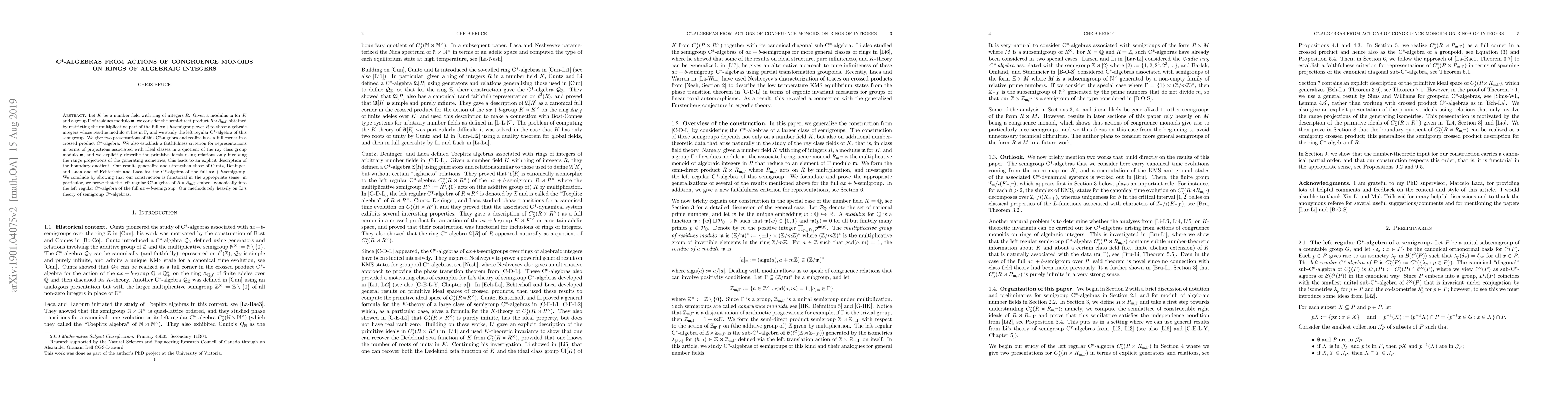 This paper studies C*-algebras from actions of congruence monoids on rings of algebraic integers, generalizing previous results and providing new insights into the structure of these algebras.