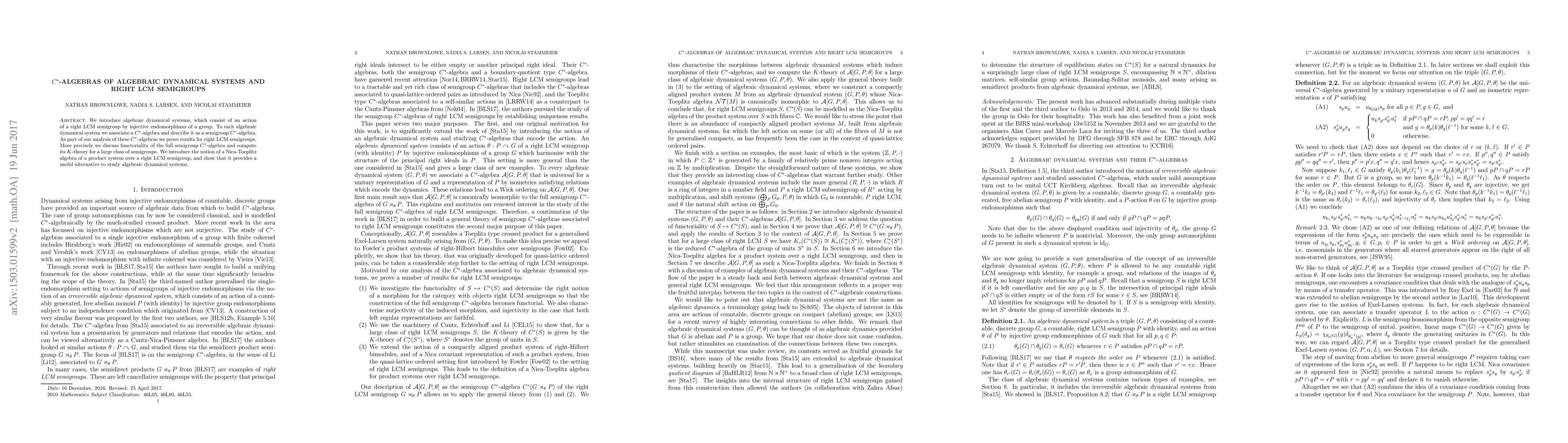 This paper introduces algebraic dynamical systems based on the action of right LCM semigroups on groups via injective endomorphisms, associating C*-algebras to these systems and exploring their properties, including K-theory computations and introducing Nica-Toeplitz algebras for alternative analysis.